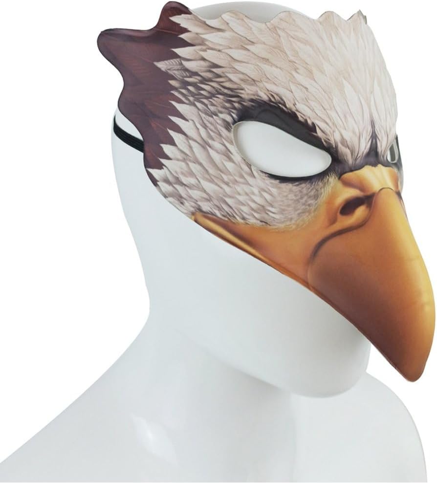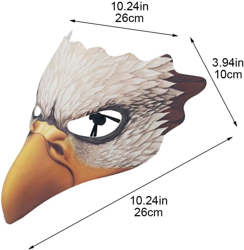 CINTURINO POSTERIORE REGOLABILE: cinturino posteriore regolabile per una vestibilità comoda e personalizzata, facile da indossare e da togliere. Dimensioni: 10,24 x 10,24 x 3,94 pollici/26 x 26 x 10 cm. Taglia unica adatta alla maggior parte delle teste di adulti, uomini e donne. La confezione include 1 maschera in costume da aquila. Forma realistica: aspetto carino a forma di faccia d'aquila realistica, creerà un'atmosfera emozionante in una festa in costume. Materiale: la maschera dell'aquila è realizzata in pelliccia sintetica, leggera, resistente e comoda da indossare. Applicazione: maschera da aquila adatta per Halloween, feste in maschera, feste in costume, costumi per adulti, carnevale, Natale o qualsiasi altra festa.