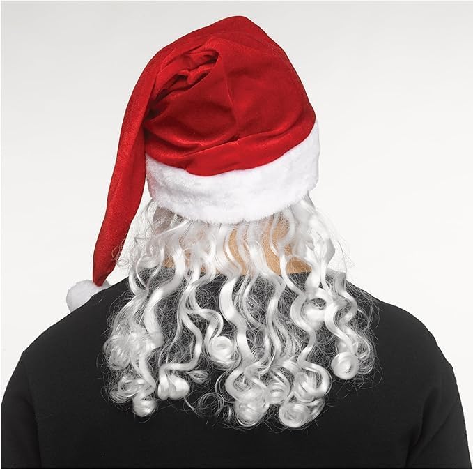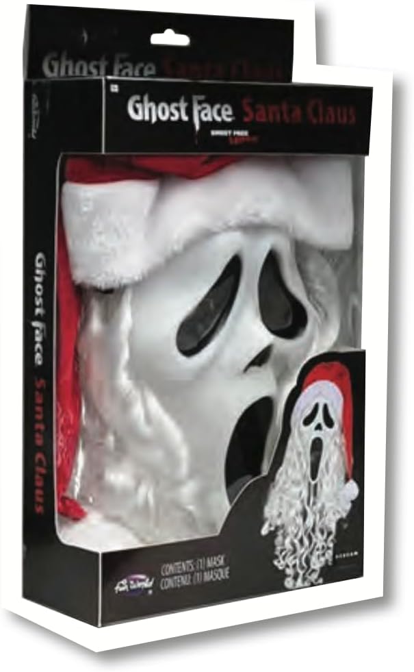 Maschera da fantasma in morbido PVC con barba lunga e morbido cappello da Babbo Natale. Le aperture per gli occhi della maschera sono rivestite in rete. Un elastico sotto il cappello di Natale serve per fissarlo alla testa. Colori: bianco/rosso. Materiale: Tessuto: 100% poliestere Maschera: 100% PVC