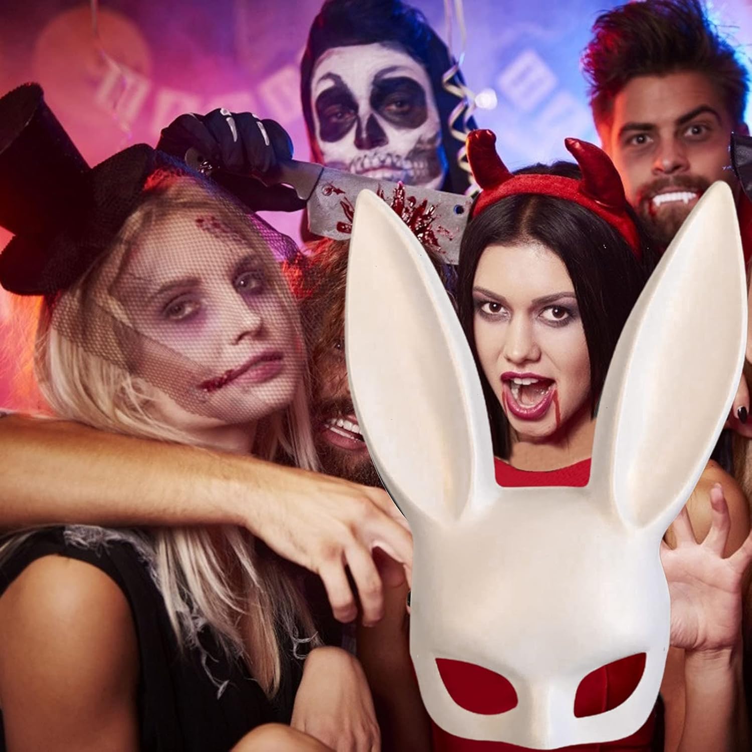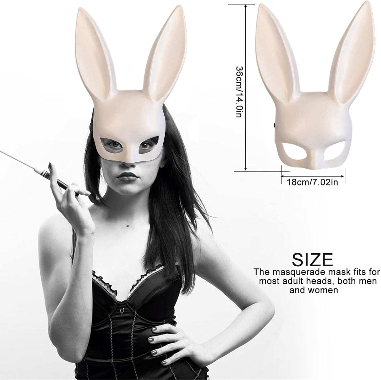Caratteristiche: 1. Maschera per il viso sexy con coniglietto, mezza copertura e con lunghe orecchie da coniglio. 2. Ideale per feste in maschera, balli o qualsiasi altra festa. Specifiche tecniche: Materiale: plastica. La confezione include: 1 maschera da coniglio.
