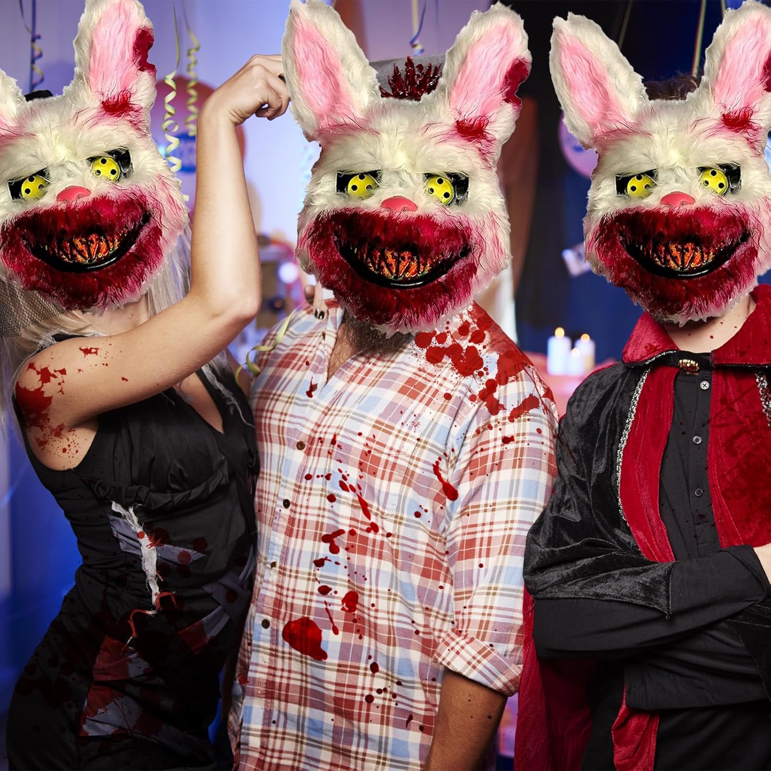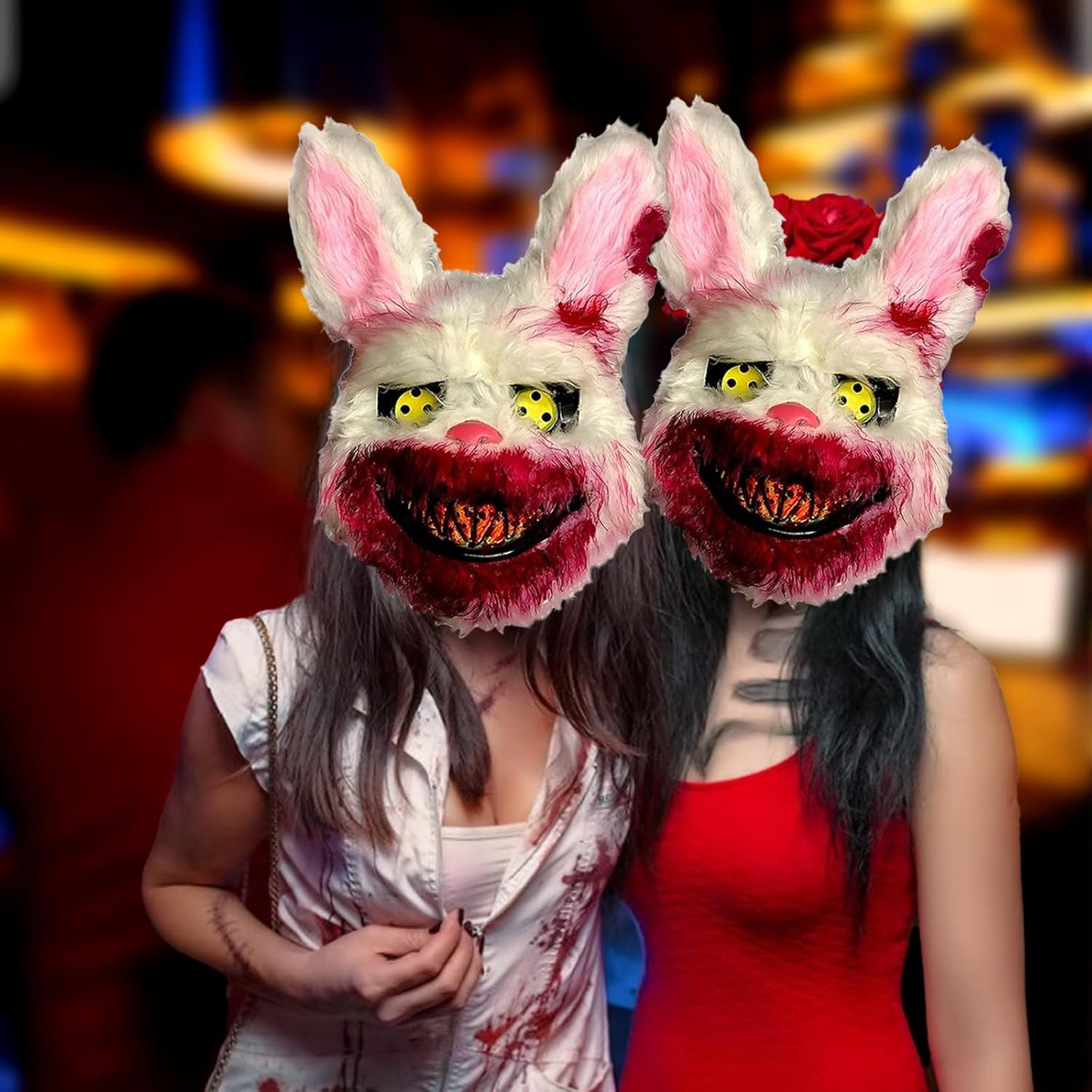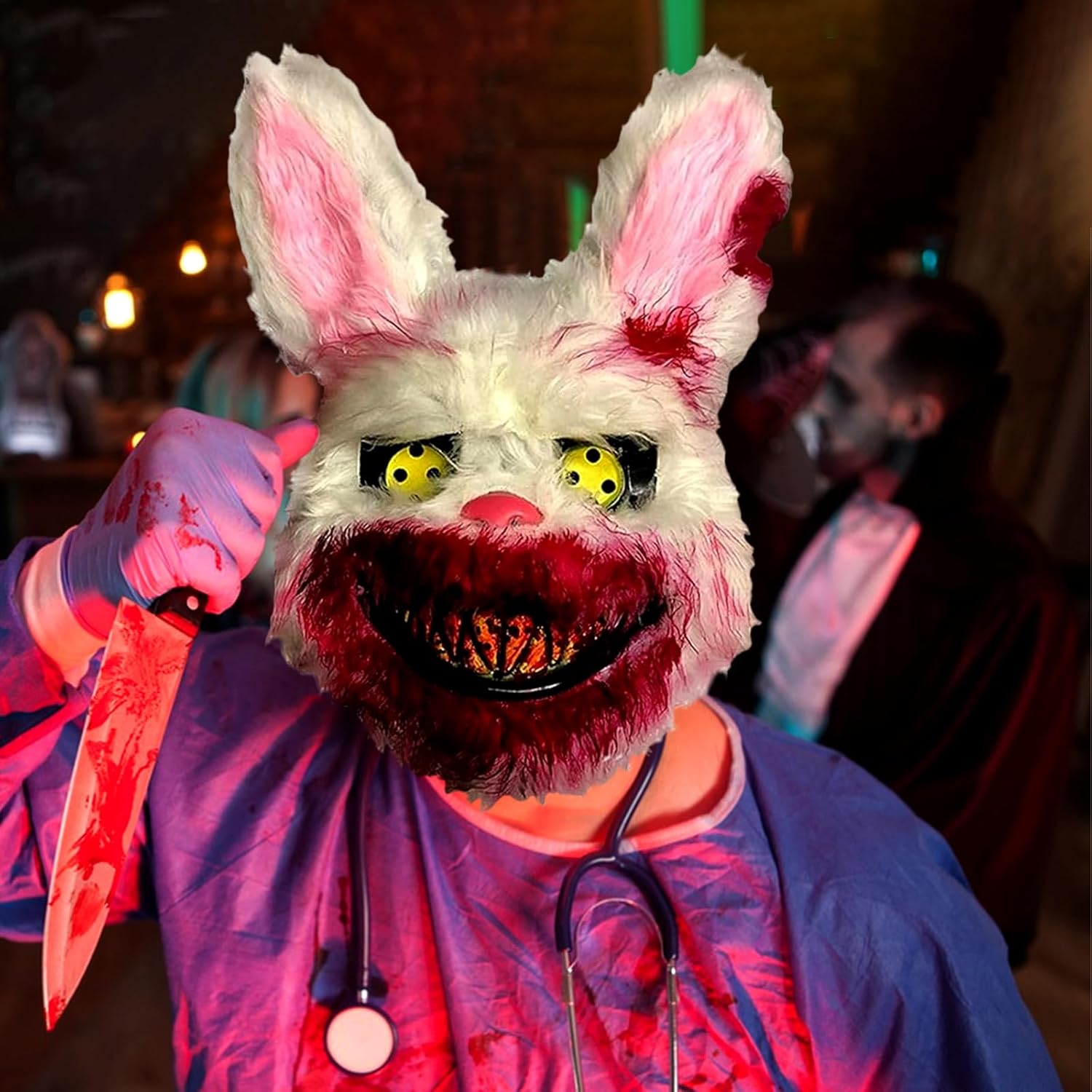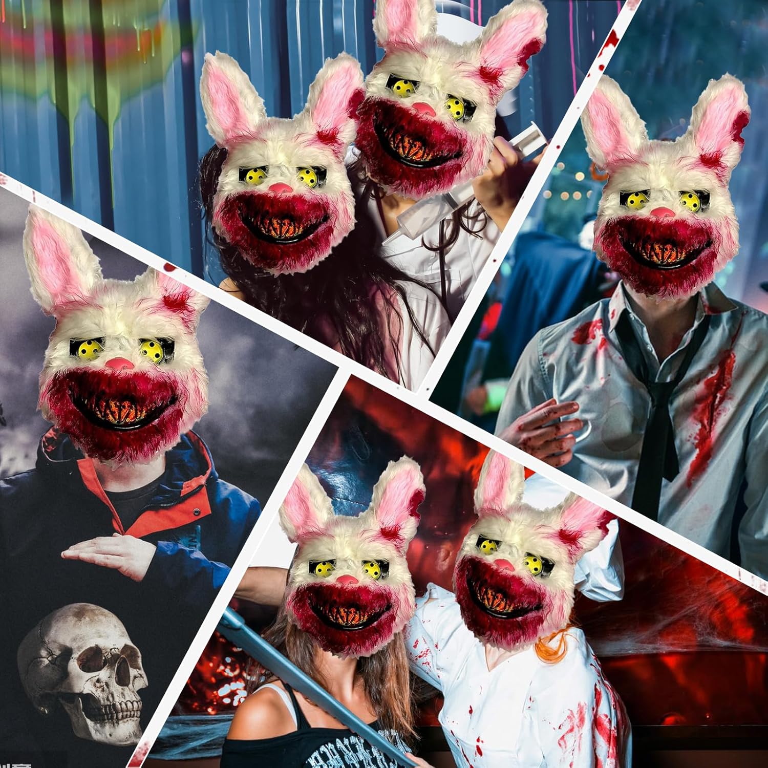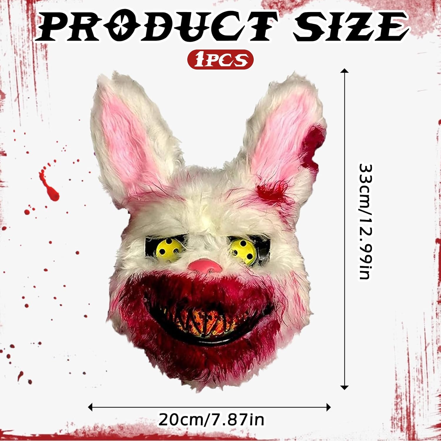 Descrizione prodotto Caratteristica: 1.La maschera da coniglio paurosa è realizzata in PVC di alta qualità e materiale peluche, atossico e inodore, robusto e durevole. 2.Bocca insanguinata, occhi diabolici, peluche bianco, design realistico del coniglio, sembra molto spaventoso e carino. 3.Maschera Da Coniglio Spaventoso per Halloween, carnevale, feste in maschera, Natale e altro ancora. Specifica: Materiale: PVC + Peluche. Dimensione: Come mostrato nell'immagine. Colore: Come mostrato nell'immagine. La Confezione Include: 1 * Maschera da Coniglio Spaventoso. Nota: 1.Si prega di consentire una leggera differenza di dimensione a causa della diversa misurazione manuale. 2.A causa della luce e della differenza di impostazione dello schermo, il colore dell'articolo potrebbe essere leggermente diverso dalle immagini. Avviso di sicurezza 1