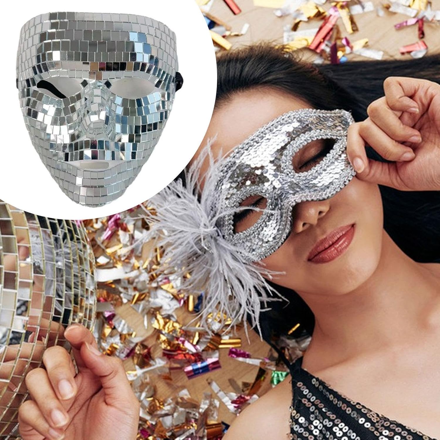 【Facile da usare】: Il materiale della maschera da discoteca è in PVC, fatto a mano e traspirante, comodo e alla moda. Quando non in uso, può essere lavato con acqua, asciugato e conservato in un luogo fresco. 【Materiale】: la maschera da discoteca con pregevole fattura e bell'aspetto, che non cade facilmente, resistente e luminosa, morbida e comoda da usare, riutilizzabile e lavabile 【Semplice ed elegante】: la maschera da discoteca è semplice ma alla moda, ed è un ottimo accessorio per le feste, rendendoti il punto focale dell'intera festa 【Dimensioni adatte】: Dimensioni di 17,7 cm x 17 cm x 7,5 cm / 6,97 pollici x 6,69 pollici x 2,95 pollici, maschera da discoteca glitterata adatta a uomini e donne, vestibilità comoda con cinturini elastici per mantenerla aderente. Ottimo regalo per amanti della discoteca. 【Scenario di applicazione】: Maschera in maschera ideale per Halloween, Carnevale, feste in maschera, locali notturni, sfilate di moda, feste in costume, banchetti nuziali, produzioni teatrali, altre feste