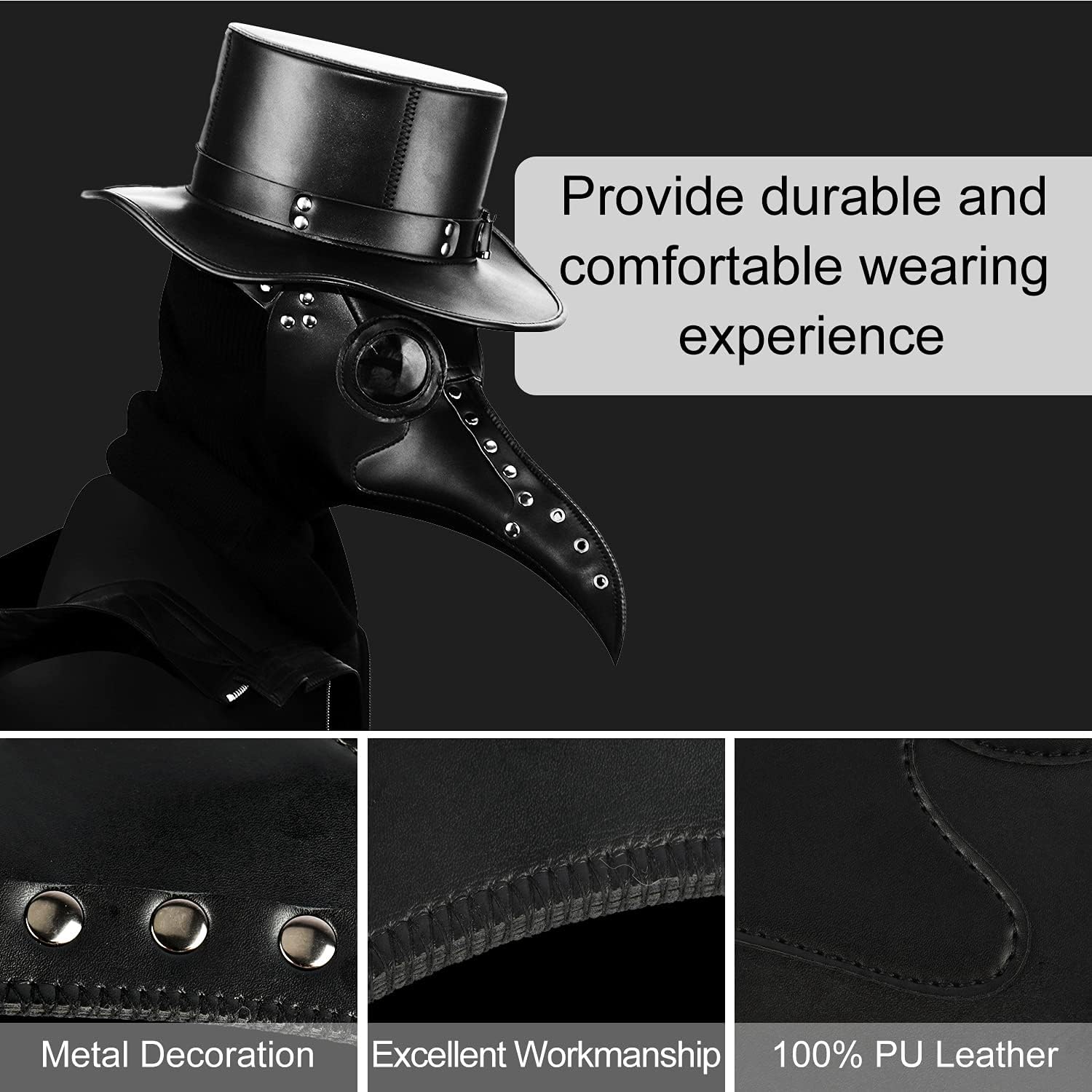 Benvenuti nel regno delle maschere del medico della peste. Abbiamo selezionato la maschera da medico della peste più alla moda, popolare e squisita sul mercato. Portali via per prepararti al carnevale della festa! Suggerimento: poiché le maschere sono tutte le più recenti, non i prodotti di riserva, quindi quando si riceve la maschera da medico della peste, potresti avere un odore di pelle, non preoccuparti, mettila nel luogo di ventilazione per due ore per risolvere Se l'obiettivo è nebbioso, puoi provare le seguenti soluzioni: 1. Applicare un agente antiappannamento o un dentifricio sull'obiettivo. 2. Lasciare un piccolo spazio sul mento; 3. È possibile inserire altre due prese d'aria intorno al mento. 4. Rimuovere le lenti (potrebbe essere un po' difficile e non facile da installare di nuovo, si prega di utilizzare con attenzione). Indossa questa maschera da medico della peste per trasformarti in un medico della peste. Rendi l'ospite il re della festa, è un ottimo regalo per te e la tua famiglia, amici, fidanzato o fidanzata.