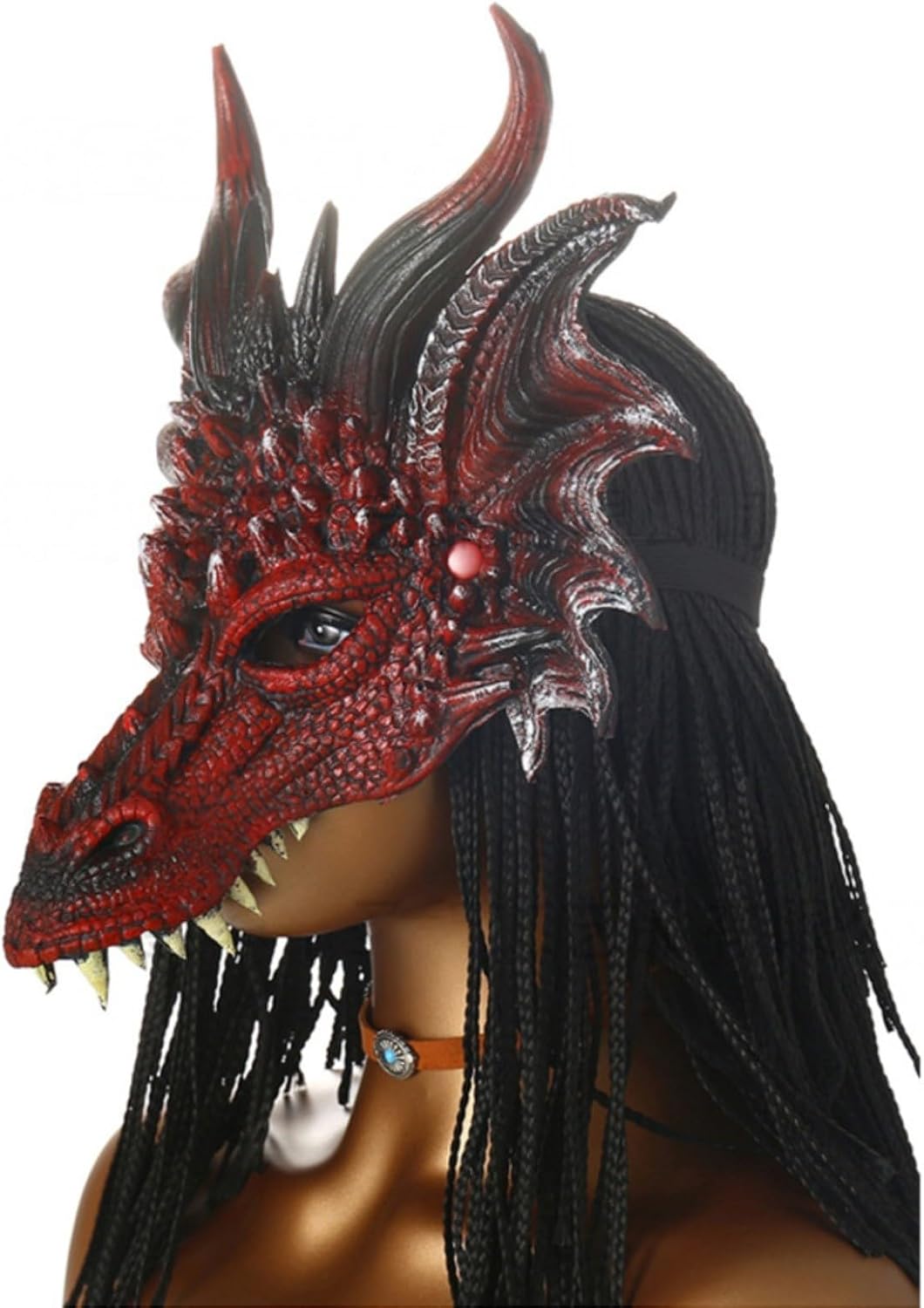 [Dettagli meticolosi del drago] Sperimenta l'incantevole realismo della nostra maschera da drago 3D con scale dettagliate e caratteristiche feroci che catturano l'essenza di creature mitiche per qualsiasi evento in costume. Adatta per tutte le età: progettata con circa 12,7 cm di lunghezza e 32,8 cm di larghezza, questa maschera si adatta comodamente alla maggior parte delle dimensioni della testa, sia per adulti che per bambini più grandi. Struttura in poliresina resistente: realizzata in robusto materiale poliresina, questa maschera è adatta per essere indossata frequentemente durante feste di Halloween o eventi cosplay senza compromettere il suo aspetto mozzafiato nel tempo. Vestibilità sicura e confortevole: con cinghie elastiche incluse, goditi una vestibilità aderente che rimane in posizione durante eventi di travestimento o riunioni di Halloween mentre il massimo comfort. Accessorio per costume accattivante: perfetta per migliorare l'atmosfera alle feste o alle convention, questa maschera da drago aggiunge un tocco emozionante alla tua collezione di costumi.