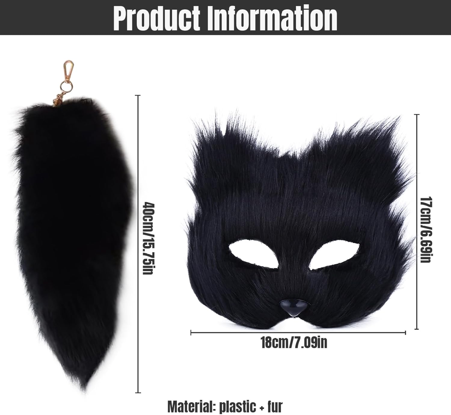 Maschera Therian e set coda: - Colore: nero. - Materiale: plastica e capelli sintetici. -Dimensioni: maschera: 18x17 cm / 7,09x6,69 pollici Coda: 40 cm. Lungo. Che si tratti di una convention di cosplay, una festa in costume, un ballo in maschera o una festa di Halloween, questa maschera da gatto Therian e il set di coda ti permettono di incarnare autenticamente la mistica e il fascino di una volpe. Crea ricordi indimenticabili incorporando questa maschera nei tuoi selfie e nelle foto di gruppo nelle occasioni festive. Che tu stia posando con la famiglia o gli amici, questa maschera esalta il fascino di ogni istantanea. Nota: a causa della misurazione manuale, le dimensioni mostrate possono variare leggermente. I colori possono variare leggermente a causa dei diversi schermi. Contenuto della confezione: 1 1 giocattolo per gatti neri. 1 coda di volpe nera