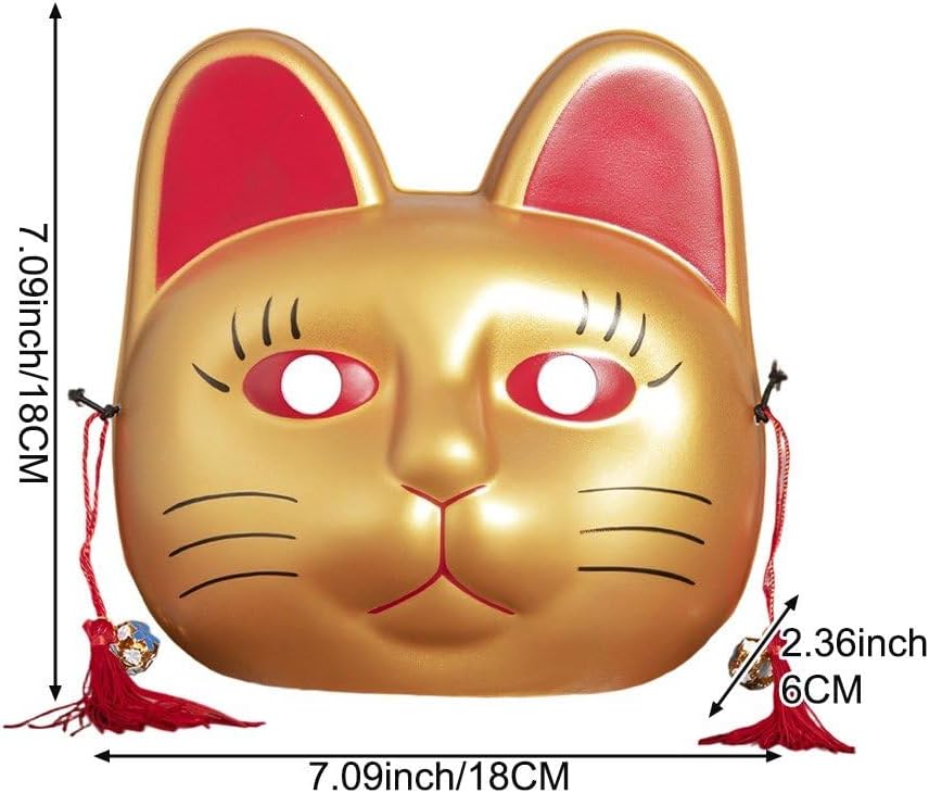 Design unico: il portafortuna unico si adatta perfettamente al tuo gioco di ruolo, costume, mostra di anime della vita quotidiana. Dimensioni: circa 18 x 18 x 6 cm. Leggero e comodo da indossare, copre tutto il viso. Ampia gamma di usi: la maschera del gatto fortunato è adatta per Halloween, carnevale, feste in maschera, giochi di ruolo, sfilate di moda, matrimoni, eventi in maschera e altri. Versatile: indossalo e attira subito l'attenzione. Si abbina a qualsiasi costume e si distinguerà durante gli eventi di Halloween e Carnevale. Materiale: questa maschera per gatti neri è realizzata in PVC, leggera e resistente, garantendo comfort e durata per un uso a lungo termine.