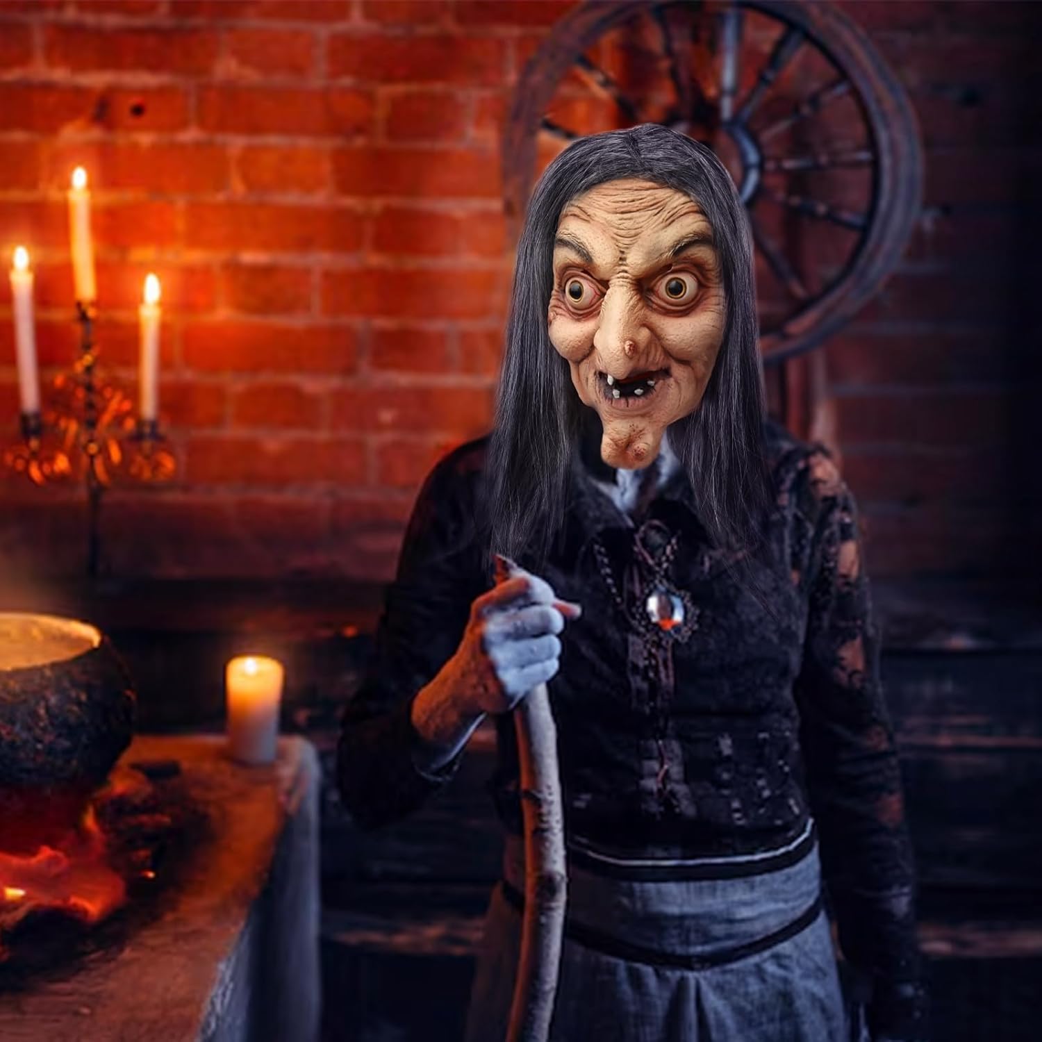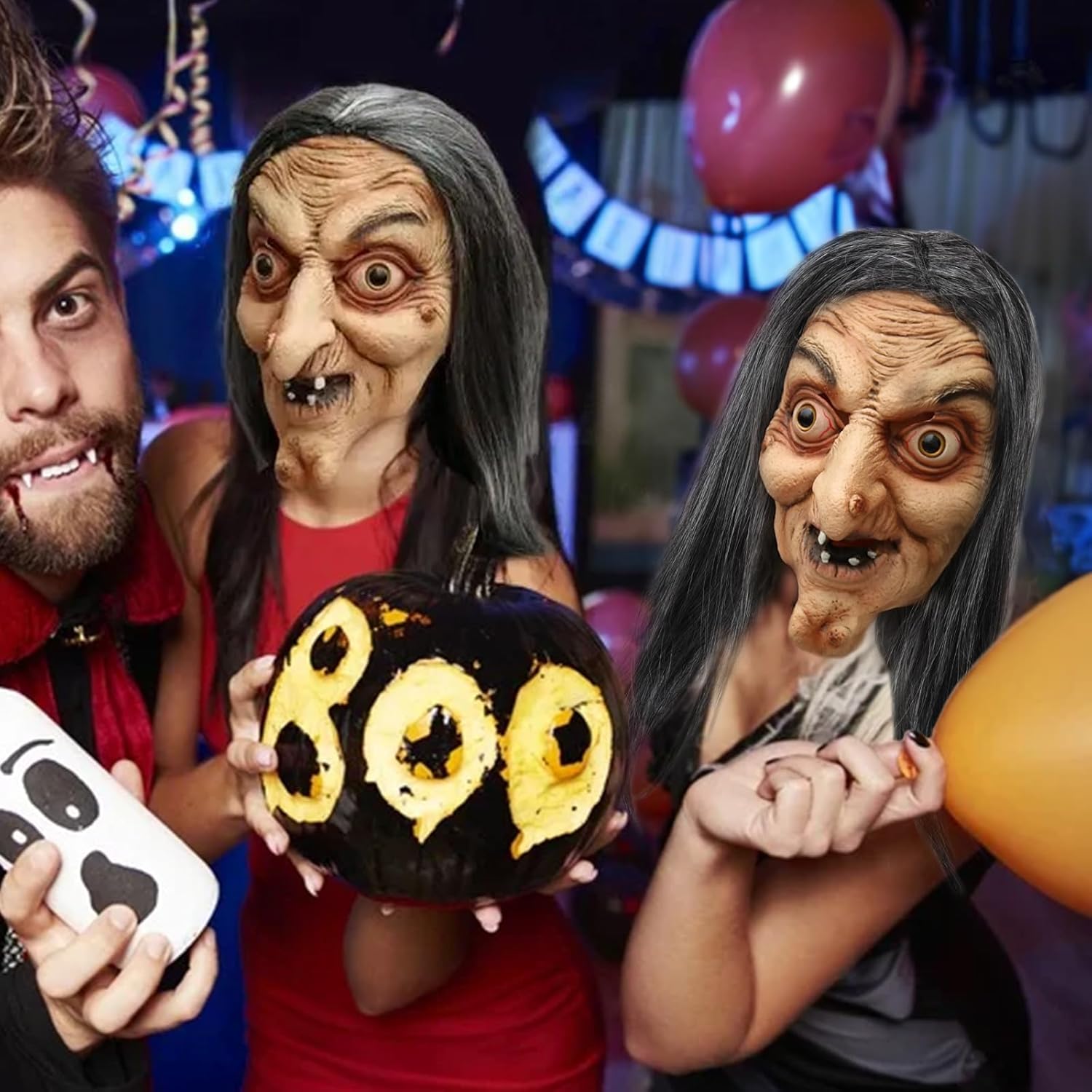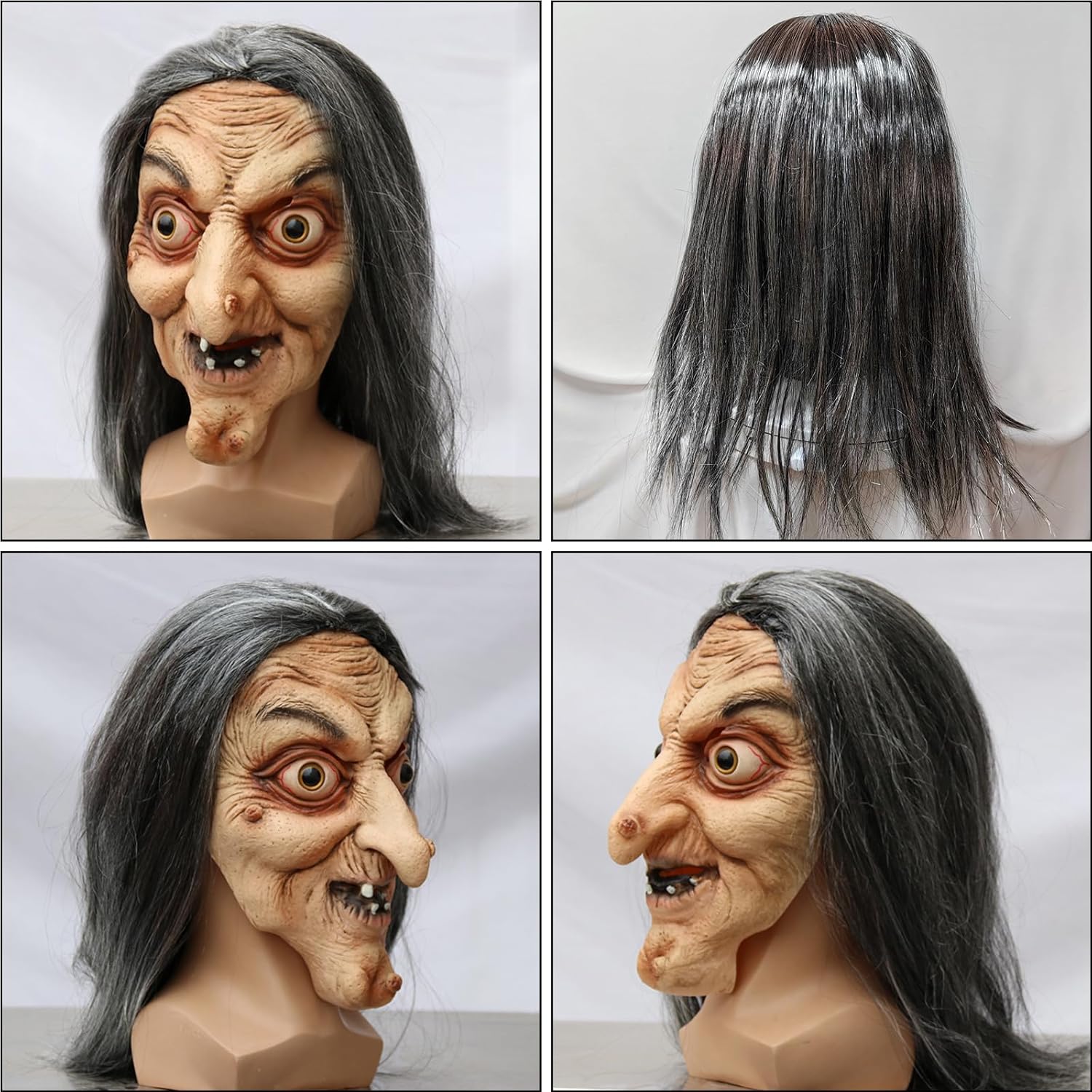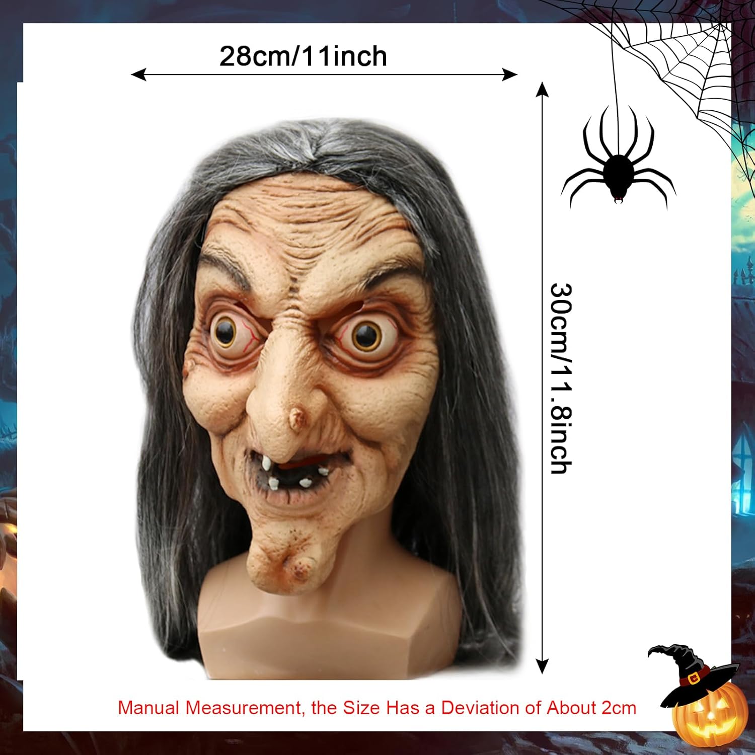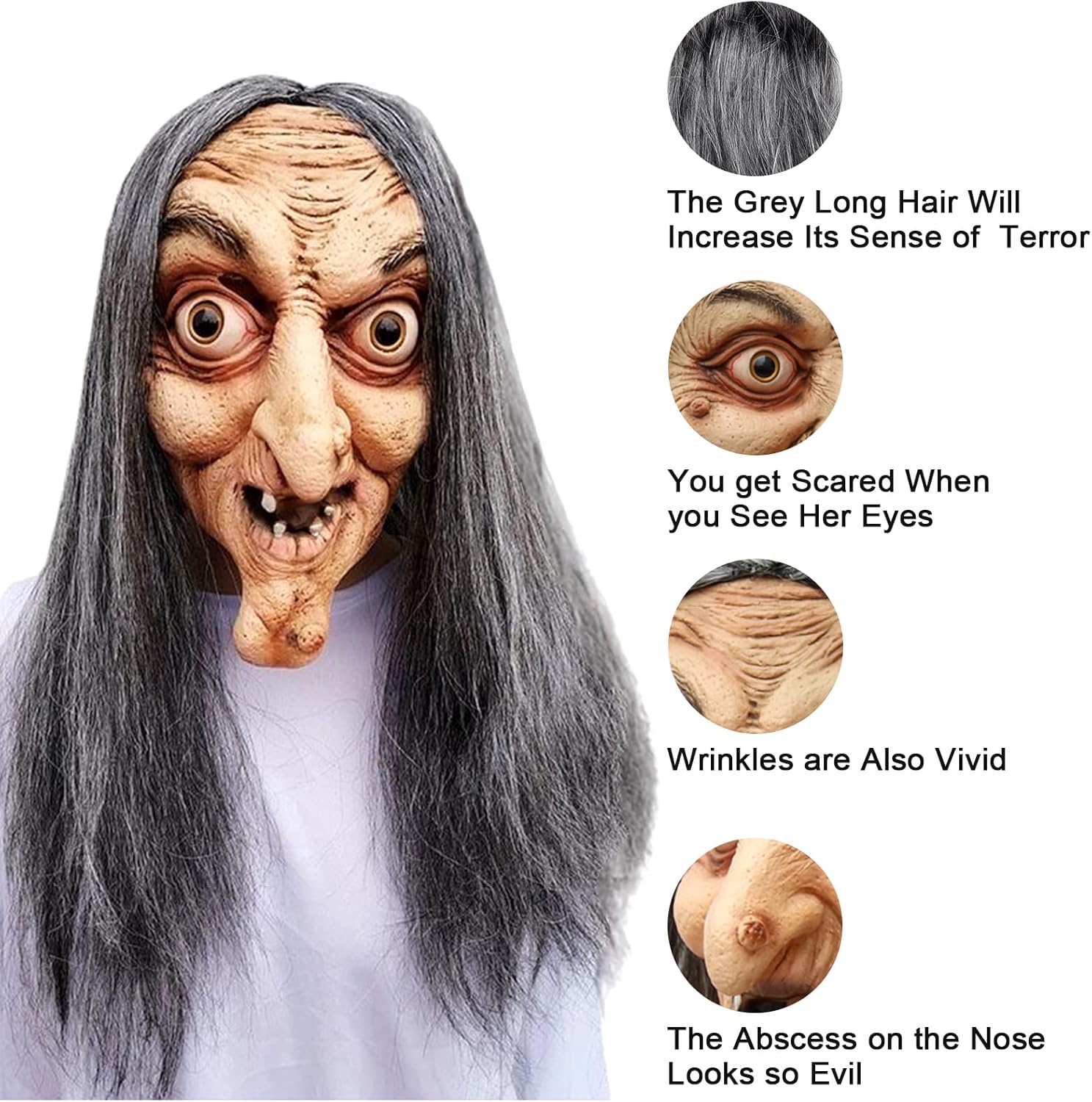Maschera da Strega di Halloween, Horror Vecchia Maschera da Strega con Capelli, Maschere in Lattice per Cosplay e Feste, Maschere Orrore Spaventosa di Halloween