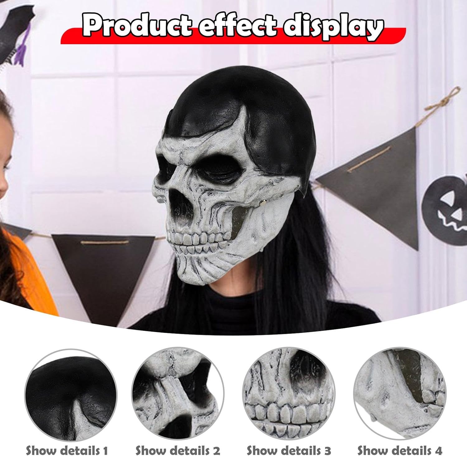 【Regalo di Halloween】: la maschera di Halloween per adulti è un regalo interessante per la famia e amici ad Halloween, dimensioni circa 24 cm x 33 cm x 23 cm / 9,45 pollici x 12,99 pollici x 9,06 pollici 【Materiale Premium】: la maschera teschio è realizzata in materiale di lattice di alta qualità, morbido ed elastico, leggero, traspirante e comodo da indossare 【Ampie applicazioni】: l'accessorio per costume con maschera da teschio spaventoso è adatto per Halloween, feste in maschera, spettacoli teatrali, carnevali, feste, cosplay, giochi di ruolo, costumi, ecc. 【Accessorio per costume di Halloween】: Maschera da teschio a testa di Halloween, nuova e inquietante, con mascella mobile, che ti consente di imitare il modo di parlare del teschio, aggiungendo una forte atmosfera da festival 【Facile da indossare】: il copricapo a forma di teschio è un accessorio fotografico accattivante, flessibile e facile da indossare. Presenta dettagli e lavorazioni di alta qualità, rendendoti il della festa.