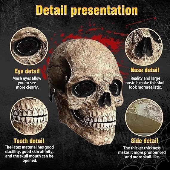 Descrizione prodotto Specifiche: Materiale: lattice Dimensioni: maschera 68 cm (adatta per circonferenza della testa 58-62 cm) Lista imballaggio: 1x maschera di Halloween Note: Si prega di prestare attenzione alle dimensioni prima dell'acquisto. Se sei allergico al lattice, non utilizzare questo prodotto. Se l'odore del lattice è troppo forte, puoi rimuovere la maschera e arieggiarla qualche giorno prima dell'uso. Avviso di sicurezza Non adatto a bambini di età inferiore a 3 anni. Da utilizzare sotto la supervisione di un adulto