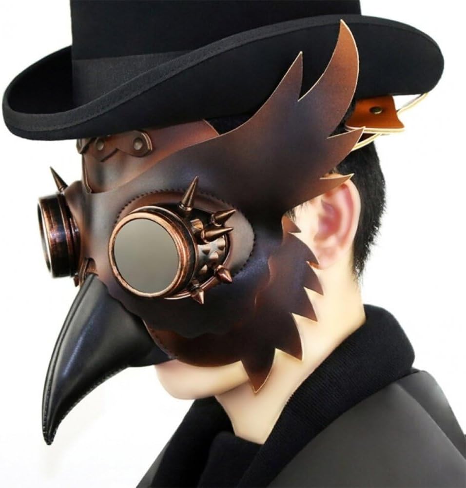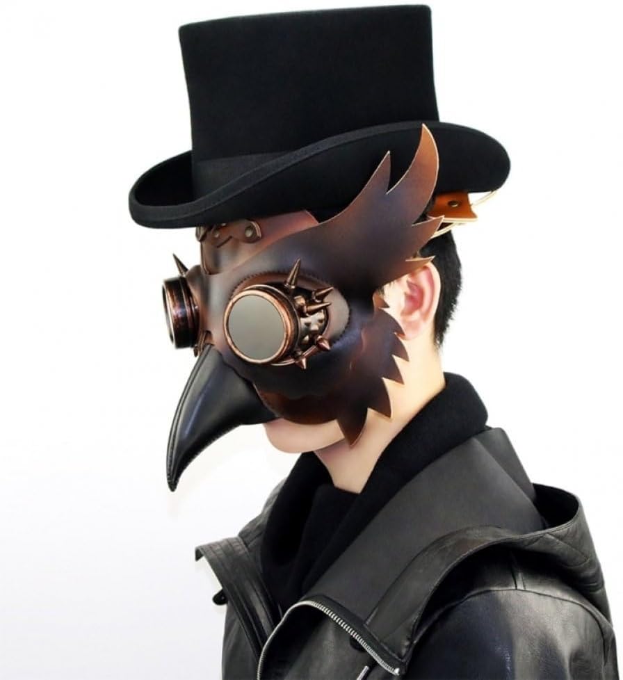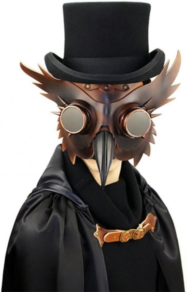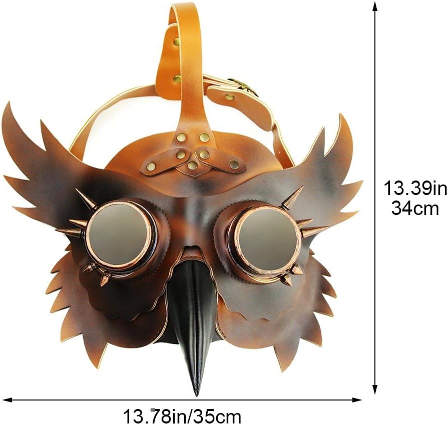 Trasformati in un medico della peste indossando il costume da medico della peste che salva la peste nera medievale. La maschera è stata progettata per proteggere dall'aria putrida, ritenuta causa di infezioni. La maschera dell'uccello della peste è un regalo meraviglioso per le persone che amano i costumi da medico della peste o steampunk. Può anche essere usato come accessorio per costumi di Halloween, decorazione per l'abbigliamento quotidiano, decorazione per la casa, collezione punk. La maschera da medico della peste in pelle PU può mantenere la buona forma dell'uccello Steampunk, decorata con borchie di metallo, aiutandoti a mostrare un terrificante temperamento misterioso. La maschera del medico della peste di Halloween è un ottimo regalo per te e la tua famiglia, amico, fidanzato o fidanzata per rendere il proprietario il re della festa. Distinguiti tra la folla con questa splendida maschera da uccello steampunk, un accessorio indispensabile per gli appassionati di cosplay e i fan del genere.