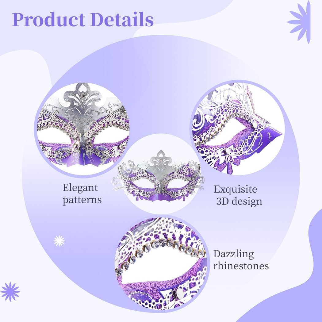 Materiale: metallo/plastica. Colore: argento/viola. Dimensioni: 8,7 volte; 9,4 cm. La confezione include: 1 volta; maschera in maschera. Nota: si prega di fare riferimento alla misura. Si prega di considerare un piccolo margine di errore nelle misure. - Potrebbe esserci una piccola differenza di colore a causa del monitor, della fotocamera o di altri fattori, si prega di fare riferimento all'articolo fisico.