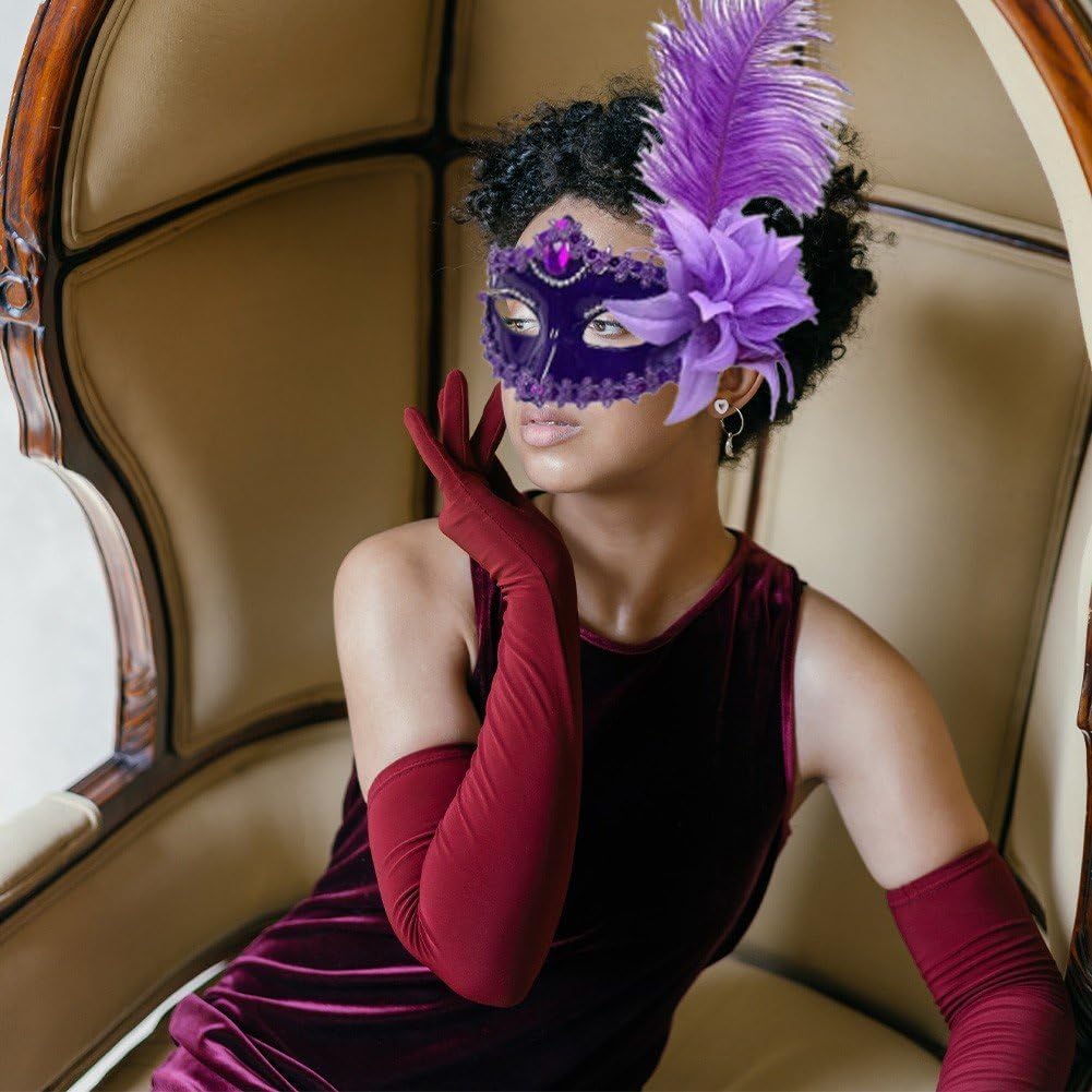 【Elegante maschera da ballo per donna】 La maschera del Mardi Gras combina le tradizionali maschere da ballo veneziane con elementi moderni per creare un fascino unico. 【Decorazione perfetta】 La maschera è perfetta per il ballo in maschera. Quando ti travesti per feste da ballo, feste in maschera, festival, feste a tema di carnevale e feste in maschera, la maschera ti farà risaltare. 【Maschera per Carnevale per Halloween】Maschera in plastica, bellissima maschera decorata con piume, molto delicata. Ampia applicazione: perfetta per Mardi Gras/Natale Halloween, ballo in maschera, ballo di fine anno, costume per feste di cosplay, palcoscenici, bar, feste di compleanno, spettacoli teatrali o decorazioni per la casa. 【Maschera piumata】 La maschera è abbastanza morbida e leggera da poter essere indossata e trasportata. Comodo da indossare tutto il giorno. Adatto a qualsiasi adulto.