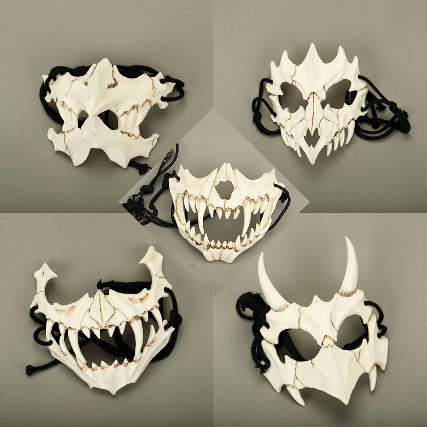 【MASCHERA SPAVENTOSA REALISTICA】 La mascella del cranio è mobile. Maschere giapponesi di Halloween, spaventoso orrore diavolo lupo maschera teschio lupo mannaro. 【VARIE OCCASIONI】 Adatto a tutti i tipi di feste a tema, feste in maschera, feste in maschera, feste con musica per DJ, regali, feste in maschera, Natale, Pasqua, Halloween, attività divertenti all'aperto, spettacoli teatrali, decorazioni artigianali, martedì grasso, balli formali, scuola festival, intrattenimento secondario. 【TAGLIA PERFETTA】 Taglia unica (unisex). Il cinturino può essere regolato in base alle dimensioni della testa, quindi era adatto alla maggior parte delle dimensioni del viso. 【MATERIALE DUREVOLE】 Materiale in resina ecologico, sicuro e affidabile. 【MIGLIOR REGALO】 Intrattieni ed eleva l'umore dei tuoi eventi con questa maschera divertente! Indossare questa maschera da teschio ti lascerà un'impressione profonda e duratura in ogni occasione e sarai il fulcro della festa. Il miglior regalo per te, gli amici e i fan dei giochi di ruolo.