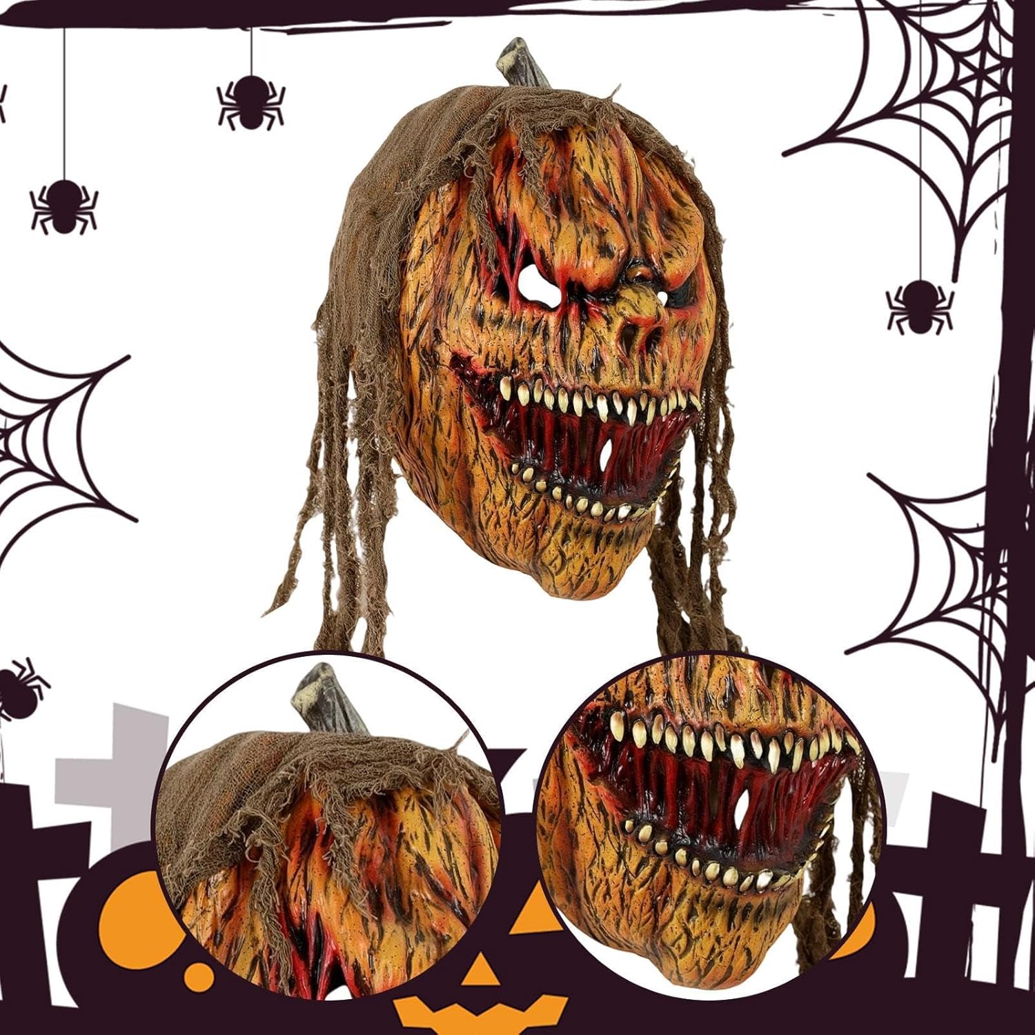 【Materiale】: Realizzata in materiale di lattice traspirante e resistente, questa maschera per il viso a forma di zucca di Halloween è progettata per resistere a molteplici utilizzi senza perdere la sua forma o i suoi dettagli, il che la rende un'ottima aggiunta alla tua collezione di costumi 【Design realistico della testa di zucca】: Caratterizzata da un design a testa di zucca strutturato con strati intricati ed effetti visivi realistici, questa maschera per il viso crea un'atmosfera inquietante e spettrale, ideale per Halloween o eventi a tema 【Vestibilità comoda】: questa maschera a forma di testa di zucca è progettata per essere comoda da indossare per lunghi periodi. Il lattice morbido e flessibile garantisce una vestibilità aderente, consentendo al contempo un facile movimento. 【Ampiamente usato】: maschera cosplay adatta per feste in maschera, decorazioni di Halloween, oggetti di scena, spettacoli di burlesque, parodie di feste, bar, cosplay, carnevale, Natale, decorazioni artigianali o qualsiasi altra occasione 【Dimensioni generose】: con dimensioni di 26 cm x 24 cm, questa maschera di Halloween è adatta alla maggior parte delle persone e offre una copertura completa della testa, migliorando l'effetto realistico complessivo