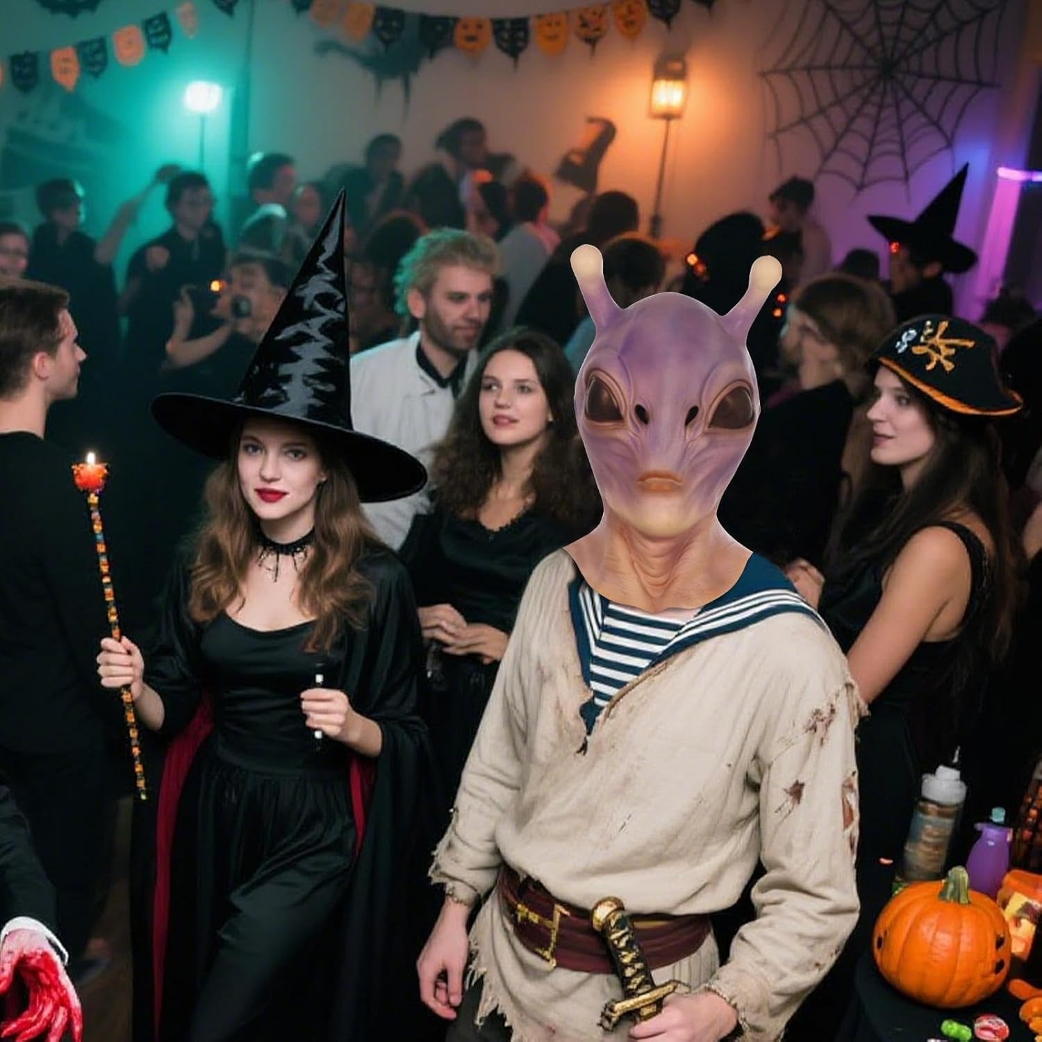 Maschera extraterrestre con testa di alieno, accessorio 3D realistico per travestimenti, per uomini, donne, adulti, palcoscenico, cosplay, casa infestata