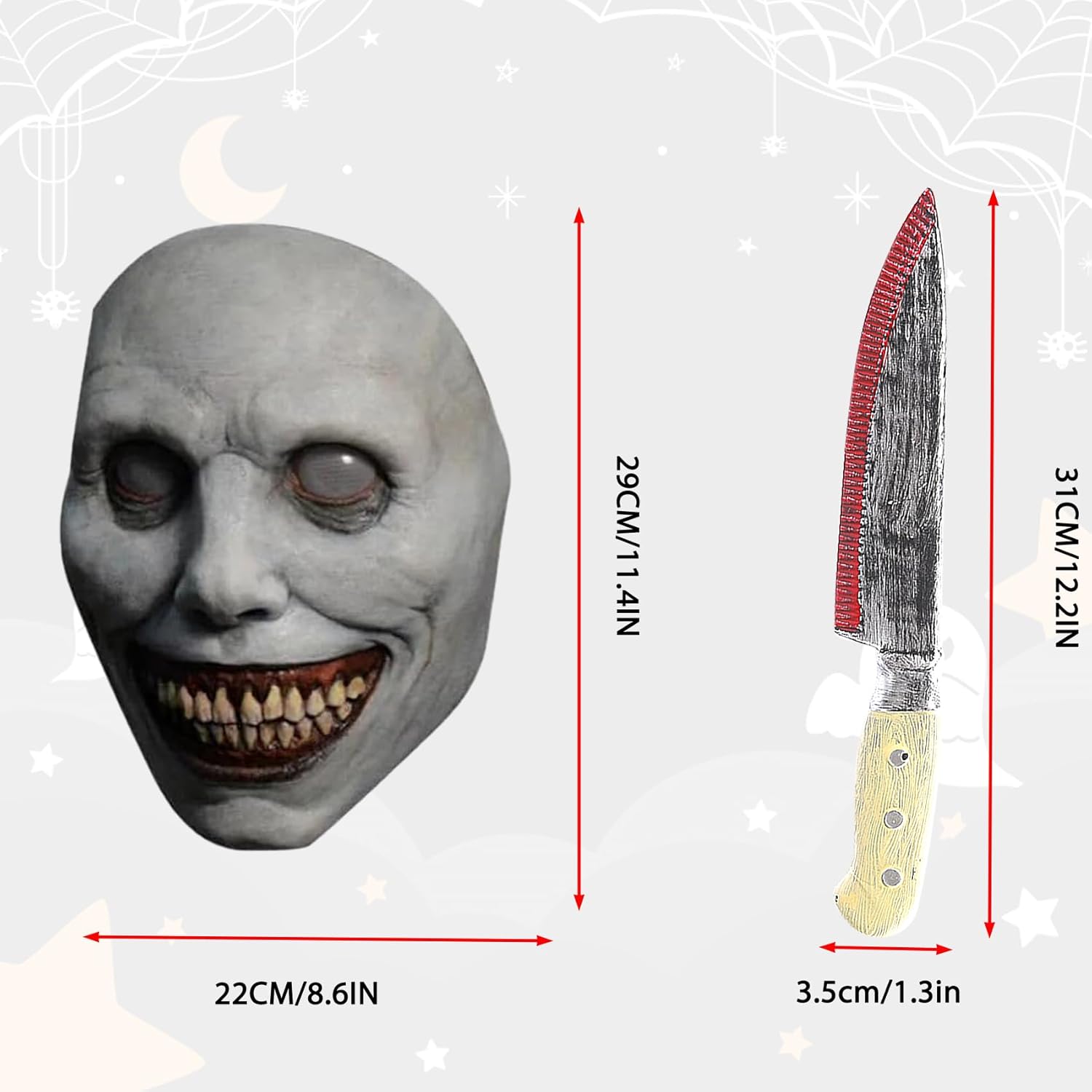Nome del prodotto: Maschera horror con sorriso da demone bianco di Halloween + coltello insanguinato Paese d'origine: Cina Peso: 100 grammi Dimensioni: Maschera: 22 x 21 x 13 cm (8,7 x 8,3 x 6,1 pollici) Coltello: 30 cm (12 pollici) Imballaggio: sacchetto di plastica PET Lista di imballaggio: maschera di Halloween*1 coltello finto insanguinato*1 Materiale: lattice naturale, plastica Stile: maschera horror bianca Elenco prodotti: maschera*1 coltello di scena*1 Informazioni sul prodotto: (modelli uomo e donna) adatto alla maggior parte delle forme del viso Folla: generale, adulti neutrali, giovani uomini e donne Scene applicabili: Halloween, all'aperto, al coperto, festa, festival, cosplay Colore: maschera horror bianca Distinguerti dalla massa, Maschera da demone sorridente spaventosa unica, Rendi unica la decorazione del tuo costume cosplay. Disegni speciali e strutture uniche sono prodotti popolari. È adatto alla maggior parte dei bambini e degli adulti di sesso diverso. Questo è un grande regalo per te e i tuoi amici. Cari clienti Stai cercando una maschera per la festa di Halloween intelligente e unica? Mi sto preparando per il prossimo Halloween e non vedo l'ora che arrivi! Questa maschera da diavolo spaventoso e sorridente sarà un'ottima scelta per te! Appunti: A causa della luce e dello schermo diversi, il colore dell'articolo potrebbe essere leggermente diverso dall'immagine, per favore capisci.