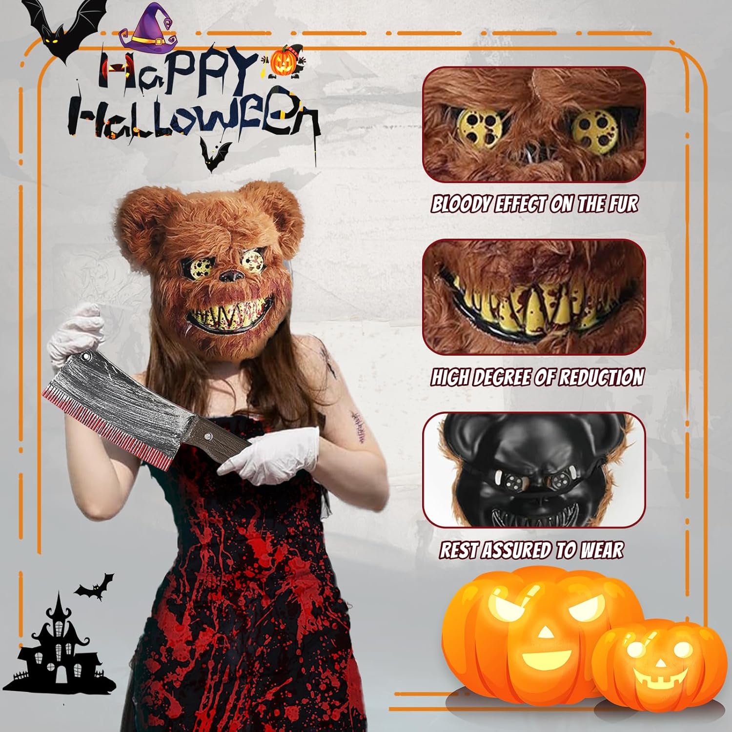Die Maske ist gut verarbeitet und sieht realistisch aus. Sie sitzt angenehm und eignet sich gut für Halloween-Partys oder als Dekoration. Preis-Leistung ist in Ordnung.