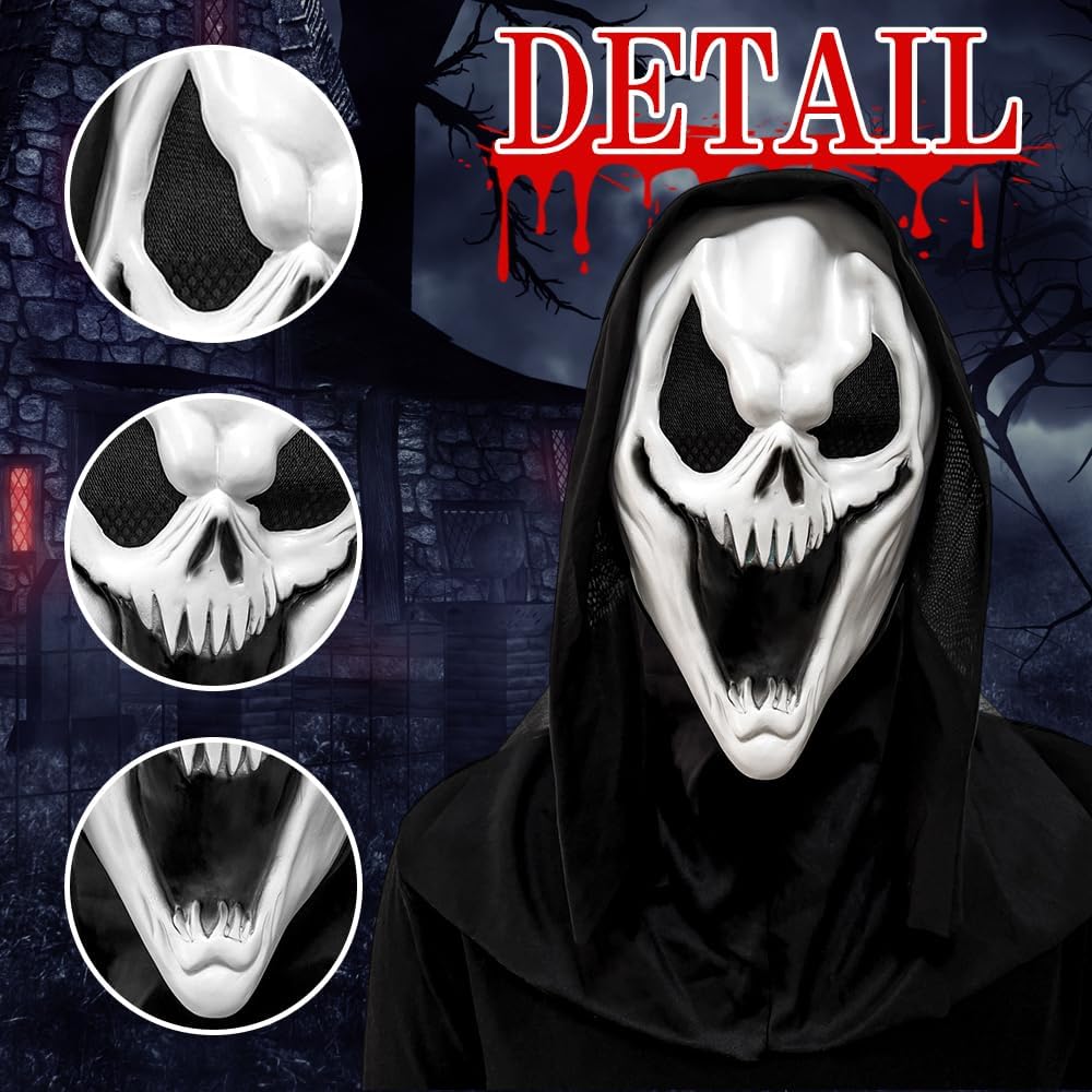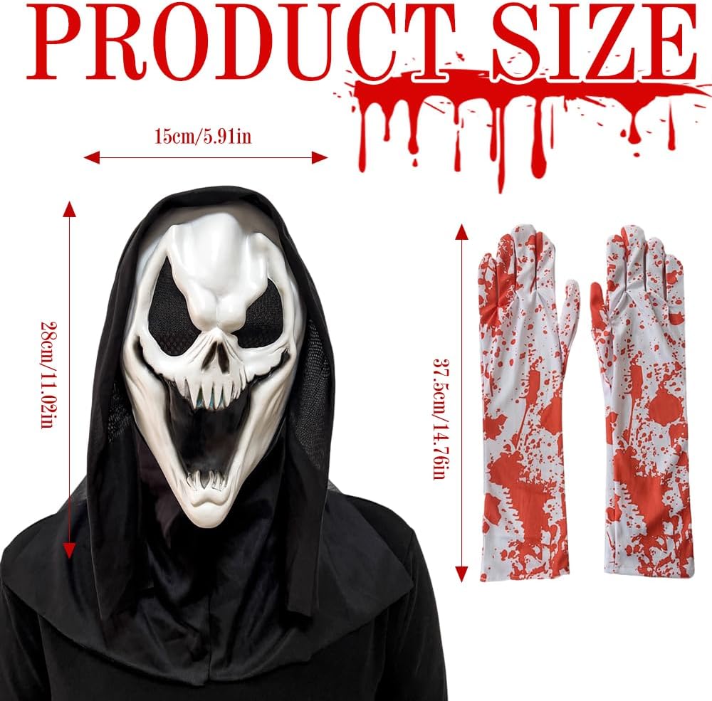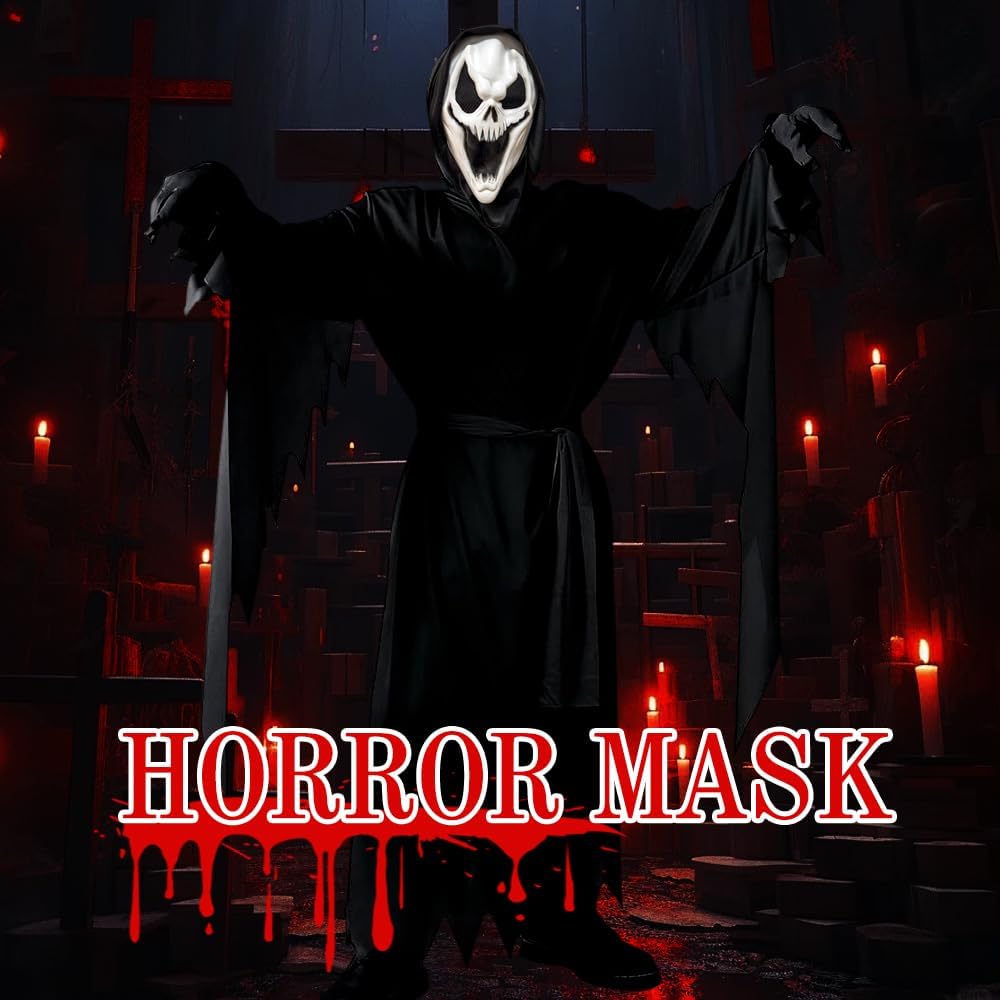 Descrizione prodotto XFSRG Maschera Halloween Ghostface Horror Set per Party Cosplay e Feste Preparati a calarti nel ruolo più spaventoso della serata con il nostro set maschera horror Halloween: la ghostface mask in lattice unisce comfort e realismo grazie al materiale flessibile che si adatta perfettamente al viso, lasciando respirare e muoversi liberamente. Le spesse trame cutanee, le crepe realistiche e le macchie di “sangue” dipinte a mano esaltano l’effetto macabro, mentre i guanti scheletrici completano il travestimento con dita deformate e pelle corrosa. Perfetto per party notturni, allestimenti in case infestate, servizi fotografici a tema horror o produzioni amatoriali: questa maschera halloween e i guanti sono resistenti abbastanza per durare più stagioni, con una pulizia semplice che richiede solo acqua tiepida e sapone delicato. Le aperture per occhi e naso sono state studiate per offrire ampia visibilità e massimo comfort, anche in spazi bui o affollati. Calati nel mito del terrore e lascia il segno con un travestimento che non si dimentica: la tua ghostface mask attende di svelare il lato più oscuro di ogni festa! Avviso di sicurezza no