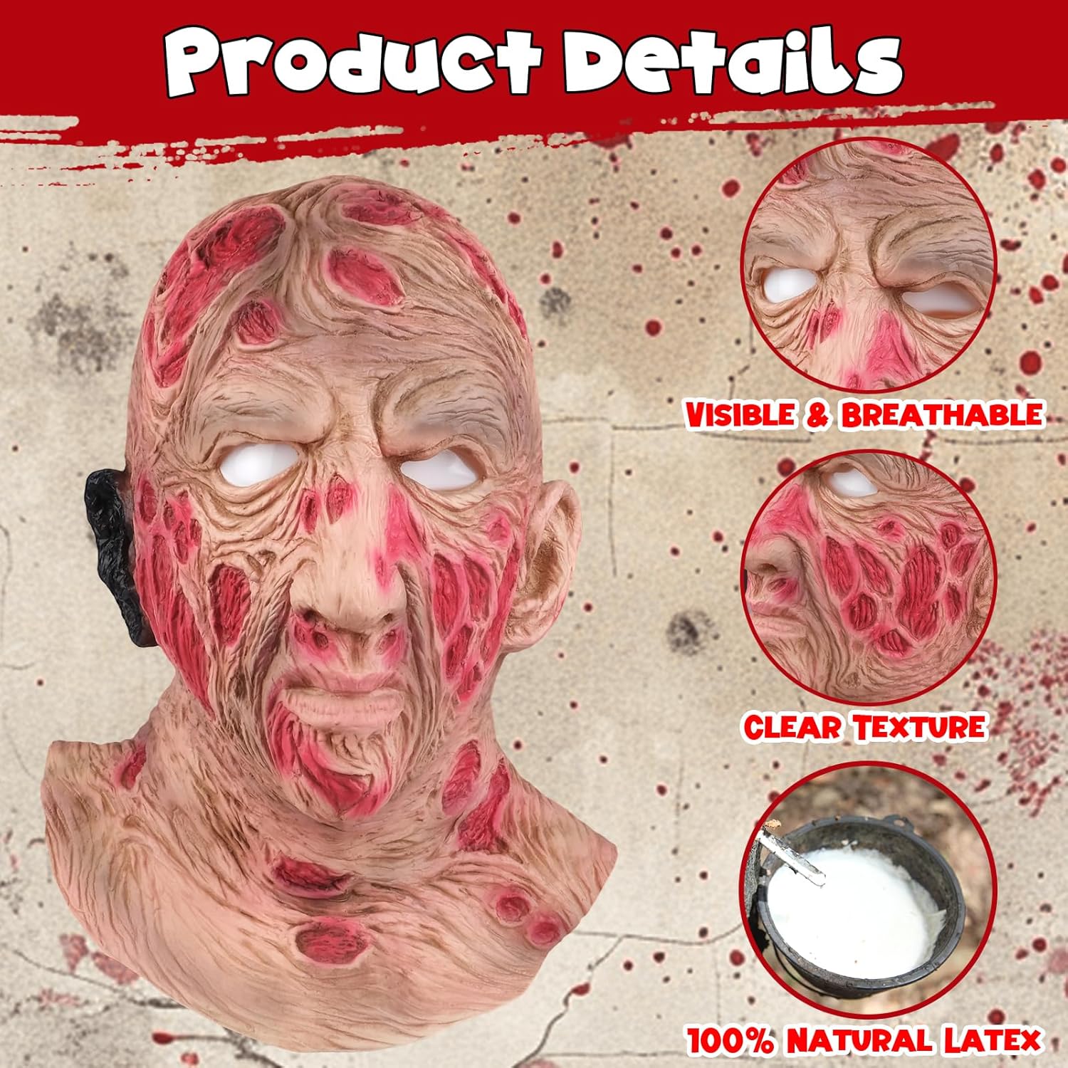 Die Aofonchy Horror-Maske ist absolut detailreich und realistisch. Das Latexmaterial riecht kaum, passt gut und sorgt garantiert für Gänsehaut. Perfekt für Halloween-Partys oder Horror-Events – ein echter Hingucker mit Schockgarantie!