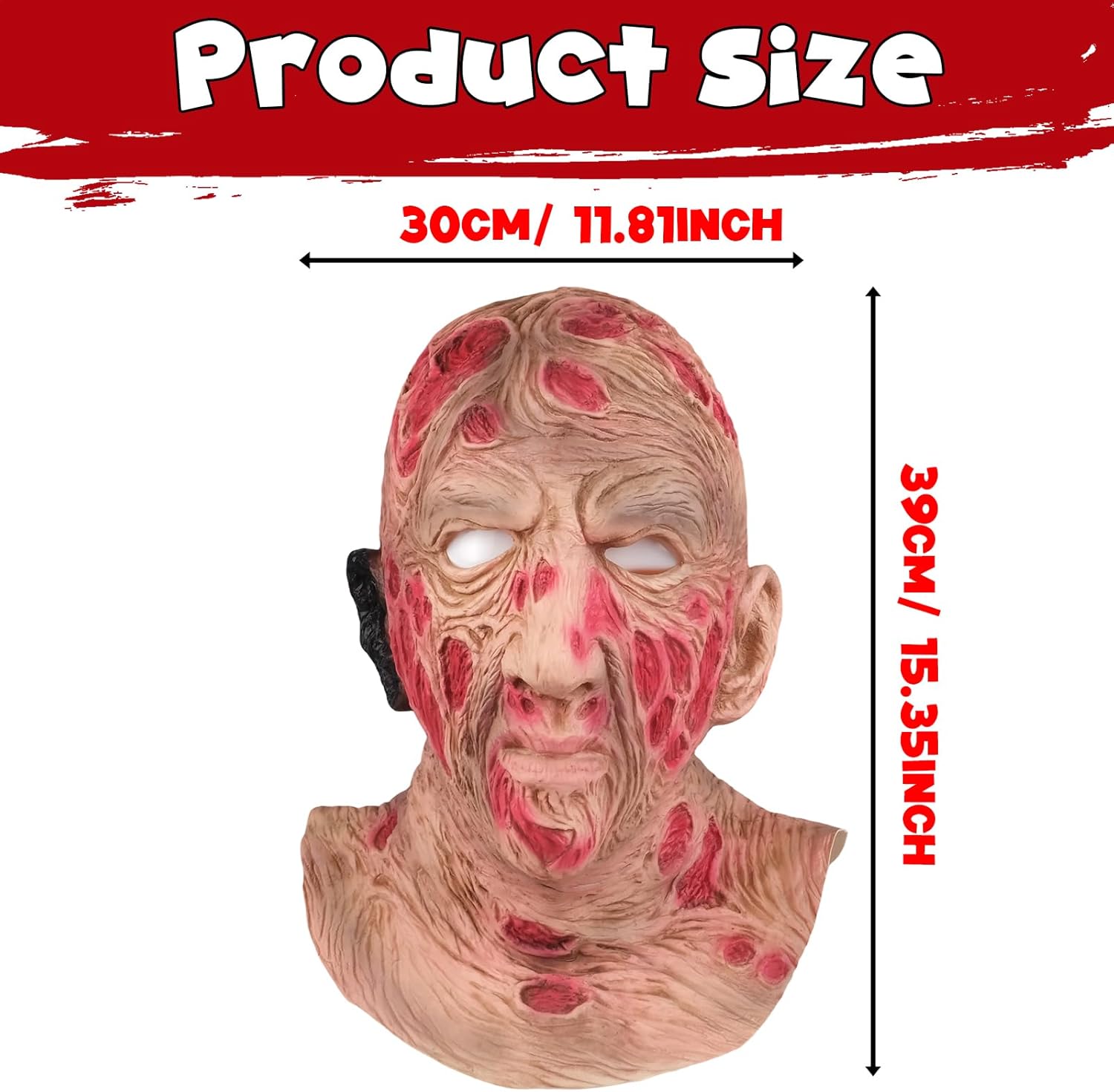 Great mask for our Halloween party this year, it will definitely be the star of the evening. I didn't expect it to be so comfortable to wear, but the opening it has at the back allows any physiognomy or more solid construction to wear it. It allows good visibility too while wearing it due to the eye cutouts and proper breathing. Being so wide because it goes down and covers the neck area, you can really get hot very quickly wearing it. It has very well-crafted details and I even "admire" myself when I look in the mirror, that soft latex takes the shape of the face and makes it as realistic as possible. Currently listed at the price of 15.99 which seems like a great deal for the features it has. Warmly recommend with 5 stars.