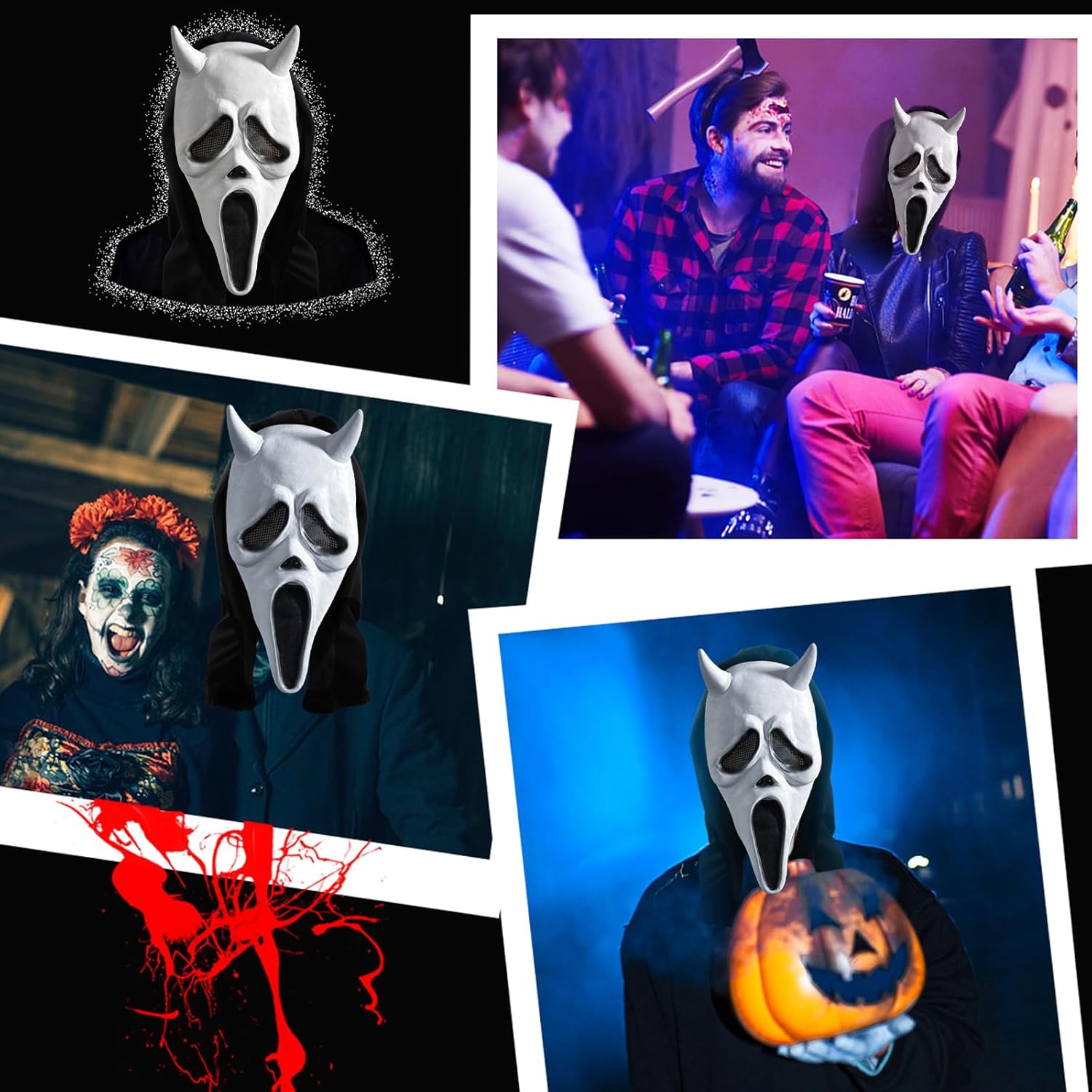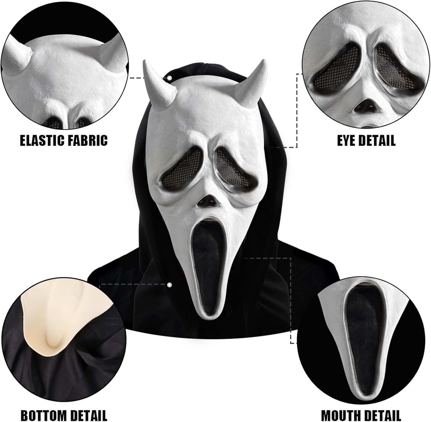 Descrizione prodotto Scream Maschera di Halloween Ghostface Maschera Fantasma Film Horror Maschera in lattice per adulti per Halloween, cosplay, per feste, carnevale, Halloween Avviso di sicurezza Nien