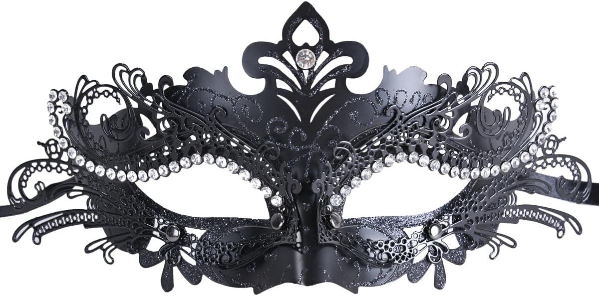 Colore: nero. Materiale: ABS, metallo, strass. Dimensioni: 21,1 x 9,9 cm. La confezione include: 1 maschera in maschera. Nota: si prega di fare riferimento alla misura. Si prega di considerare un piccolo margine di errore nelle misure. - Potrebbe esserci una piccola differenza di colore a causa del monitor, della fotocamera o di altri fattori, si prega di fare riferimento all'articolo fisico.