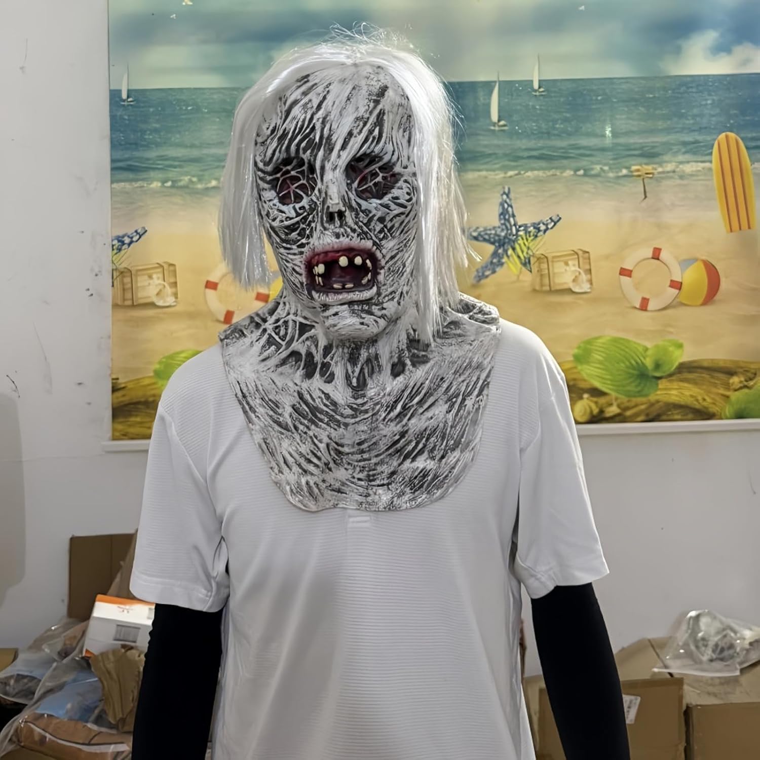 Descrizione prodotto Descrizione del prodotto: Quando ricevi la maschera, ha un odore di lattice naturale. Basta sciacquarla con acqua o lasciarla in un luogo ventilato per 2 giorni. Robusta, comoda da indossare e dalla vestibilità perfetta: questa maschera durerà per più di una festa. Le aperture negli occhi e nella bocca offrono ampio spazio per vedere e respirare. L'aspetto realistico farà sì che tutti si chiedano se il vero fantasma femminile sia proprio davanti a loro. I tratti del viso e le proporzioni sono meticolosamente realistici. Questa spaventosa maschera di Halloween è perfetta per Halloween, balli in maschera, feste in maschera, carnevali, sfilate natalizie, Pasqua, feste di Capodanno, feste a tema e molto altro. La spaventosa maschera integrale in lattice di Halloween è realizzata in tessuto elastico e l'angolazione può essere regolata per adattarsi alla testa e alla coda, permettendoti di partecipare ad Halloween in modo più confortevole. Le maschere da scheletro di Halloween sono adatte a tutti, uomini e donne. Specifiche del prodotto: Colore: Bianco Materiale: Lattice Dimensioni: 42-62 cm Contenuto della confezione: 1 maschera intera in lattice spaventosa per Halloween Avviso di sicurezza No