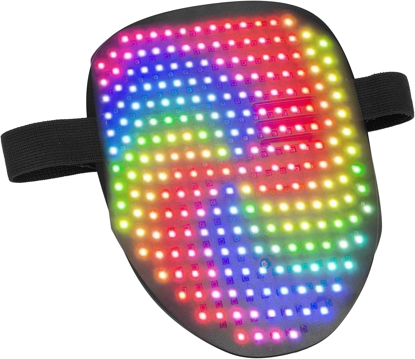 Opzioni di visualizzazione versatili: la cover illuminata per la trasformazione del viso presenta 25 modalità di visualizzazione dinamiche e 25 immagini statiche, consentendo la personalizzazione con motivi monocolore, lampeggianti, sfumati, lucidi e multicolori per soddisfare varie preferenze e situazioni. Comodo controllo dei gesti: dotato di un interruttore del sensore gestuale intuitivo, basta premere il pulsante di accensione, coprire il sensore con la mano per modificare l'immagine visualizzata quando viene visualizzato l'OK, offrendo facilità d'uso e funzionamento intuitivo per la personalizzazione interattiva. Design confortevole: realizzata in plastica robusta e materiali in morbida schiuma, questa copertura LED per la trasformazione del viso è progettata per un'usura di lunga durata, con cinghie regolabili e ampi fori per gli occhi che garantiscono comfort, visibilità e una vestibilità durante l'uso prolungato senza alcun peso. Batteria a lunga durata: dotata di una porta di ricarica USB di tipo C (5 V 1 A), la brillante copertura facciale illuminata a LED richiede 3 ore iniziali e fornisce un'autonomia continua di circa 8‑10 ore, rendendola adatta per essere indossata tutto il giorno a eventi e raduni. Ampia applicazione: ideale per cosplay, feste in maschera, compleanni, carnevali, festival di musica elettronica e altro ancora, la copertura per il viso a LED per le vacanze con spalline regolabili è una scelta unica e accattivante per le persone che desiderano distinguersi e fare una dichiarazione in diversi eventi .