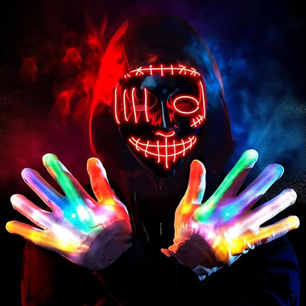 Descrizione prodotto Pronti a prendere d'assalto la festa? Immagina di entrare in una stanza buia e di accendere la tua maschera LED di Halloween al momento giusto: emozioni assicurate! Questa non è una maschera ordinaria; È il tuo biglietto per diventare la star indiscussa della notte di Halloween. Il nostro set completo comprende un'affascinante maschera da pirata LED con tre modalità di illuminazione ipnotiche (accesa fissa, lampeggiante lento e lampeggiante veloce) e un guanto LED abbinato con sei accattivanti funzioni luminose aggiuntive. Questa maschera da pirata a LED enfatizza non solo gli effetti spettacolari, ma anche la sicurezza e il comfort. Realizzata in PVC inodore di alta qualità e dotata di morbida luce fredda elettroluminescente, questa maschera da pirata di Halloween è sicura per la pelle e gli occhi e non si riscalda anche se indossata a lungo. Specifiche tecniche: Modalità maschera: 3 modalità (fissa, lampeggiante lento, lampeggiante veloce) Modalità guanti: 6 modalità Materiale: PVC inodore di alta qualità, luce fredda elettroluminescente, imbottitura in schiuma Regolabile: cinturino regolabile per un comfort ottimale Avviso di sicurezza Nessun avviso