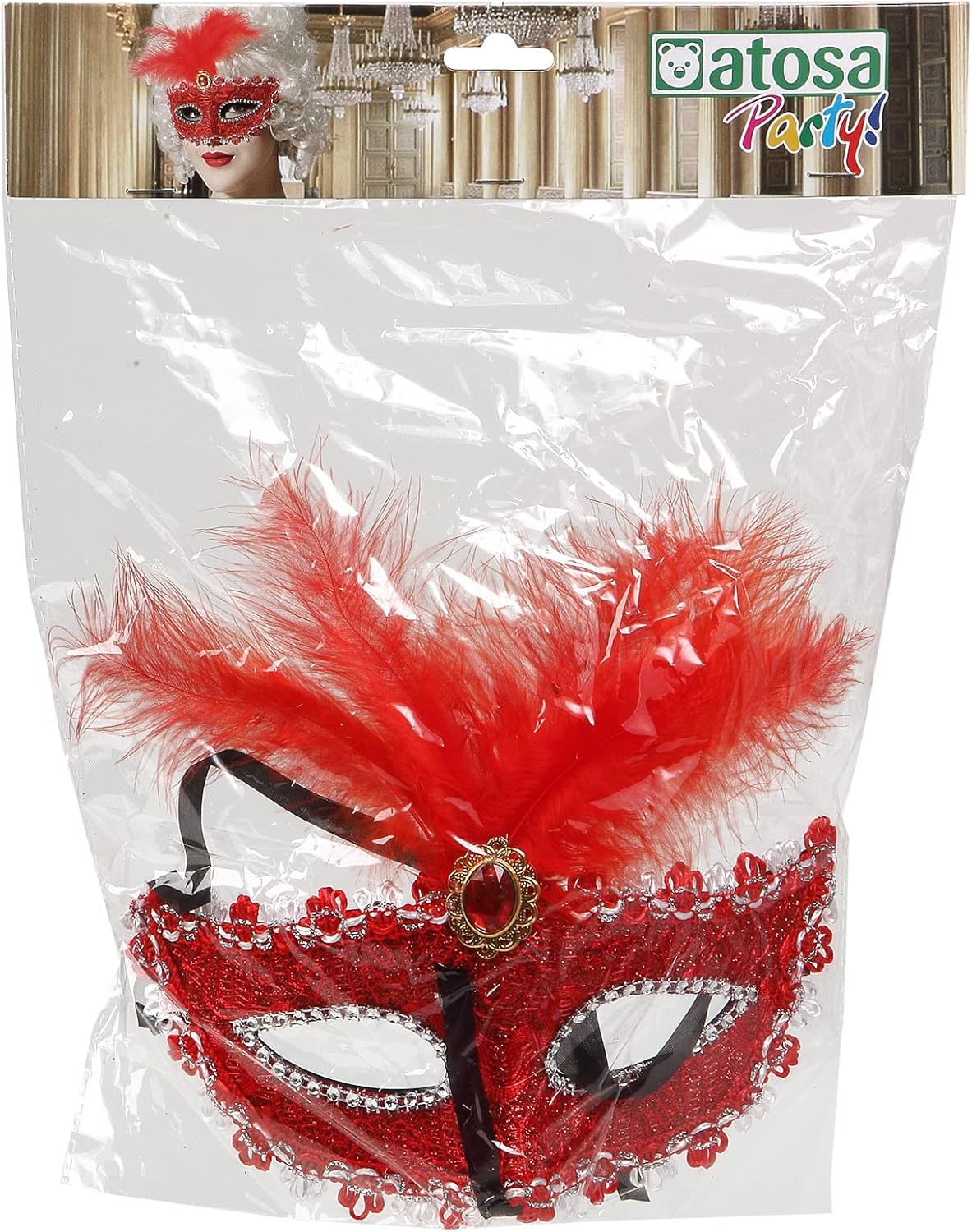 Descrizione del prodotto Accessorio per costume rinascimentale Maschera da lupo rosso marchesa per donna Questa maschera rigida sarà adatta per completare un costume da marchesa, regina o principessa, sarà perfetta per un ballo e nasconderà i tuoi occhi con eleganza. Descrizione: 1 Maschera di plastica rigida la maschera è ricoperta di paillettes rosse poi con pizzo rosso sulla parte superiore, la parte superiore e inferiore della maschera sono rifinite con una treccia ricamata con filo di cotone rosso, argento e bianco, il bordo degli occhi è evidenziato da una fascia argentata al centro in alto: 3 grandi piume rosse decorate con una finta pietra rossa è fissata con un nastro nero da legare sul retro Avviso di sicurezza nessuno