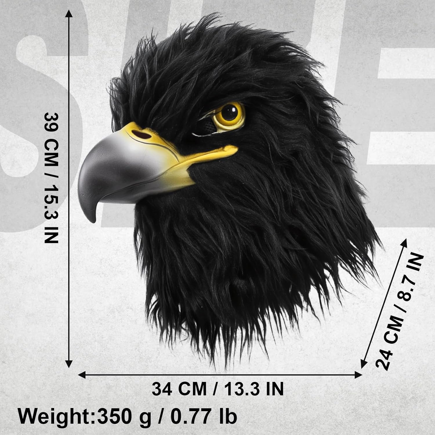 Geniale Vogelmaske, was Aussehen und Wirkung betrifft, wenn sie getragen wird. Die Maske kam innerhalb von 24 Std. zusammengefaltet und eingeschweisst in einem Pappumschlag an. Die Knickstellen waren aber gut gewählt, sodass der Schnabel nicht verformt war. Die erste optische Wirkung hat mir schon super gut gefallen. Das große, glänzende Glasauge trägt mit seinem sehr präsent wirkenden Vogelblick viel zu der attraktiven Wirkung bei. Das "Federkleid" besteht aus zotteligem, schwarzem Pelz, was erstaunlich realistisch wirkt und auch den Hals bedeckt. Innen ist die Maske vollständig aus Gummi, ähnlich einem Spülhandschuh und so riecht sie auch. Ich persönlich finde den Latexgeruch nicht sonderlich störend oder unangenehm, obwohl ich bei Gerüchen immer empfindlich bin. Das mag daher kommen, dass die Maske nicht nach Erdöl,- oder Lösungsmitteln riecht. Natürlich kann die Maske nur eine Einheitsgröße liefern, sodass sie, je nach Kopfgröße, mal enger und mal weiter sitzt. Mein Mann hat einen großen Kopf und auch ihm hat die Maske noch gepasst. Allerdings ist das Sichtfeld durch die kleinen Augenöffnungen, die mit schwarzem Mesh-Gewebe verdeckt sind, wirklich recht eingeschränkt. (auf dem Foto oben zu erkennen). Hier könnte man sehen, ob man die Öffnungen noch etwas vergrößern kann. Auch gab es ein paar lose Fellflusen, aber die schienen noch von der Produktion zu stammen und mir ist weiterhin kein Haaren aufgefallen. Sicherlich ginge es qualitativ noch hochwertiger, aber alles in allem ist die Maske wirklich klasse und auch nicht zu billig gemacht. Wir sind sehr begeistert von dieser schwarzen Adlermaske. Trägt man schwarze Kleidung dazu, entsteht eine frappierende optische Einheit und die beeinduckende Wirkung ist einem sicher. (Kleiner Hinweis: auf Kinder könnte eine derart verkleidete Person eine bedrohliche oder verstörende Wirkung haben, da wäre ich lieber vorsichtig)