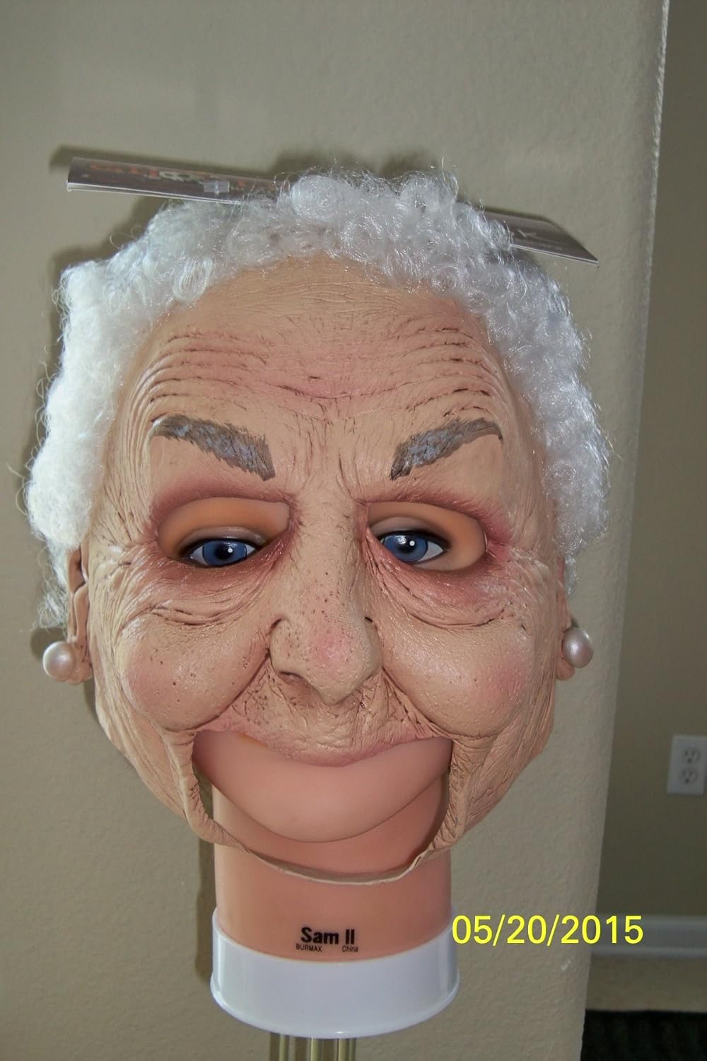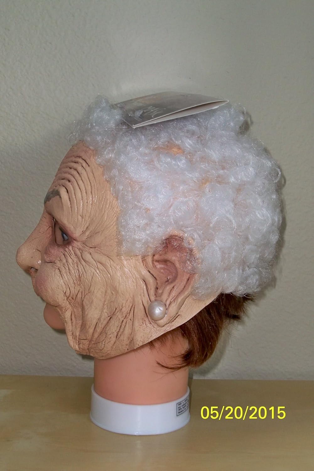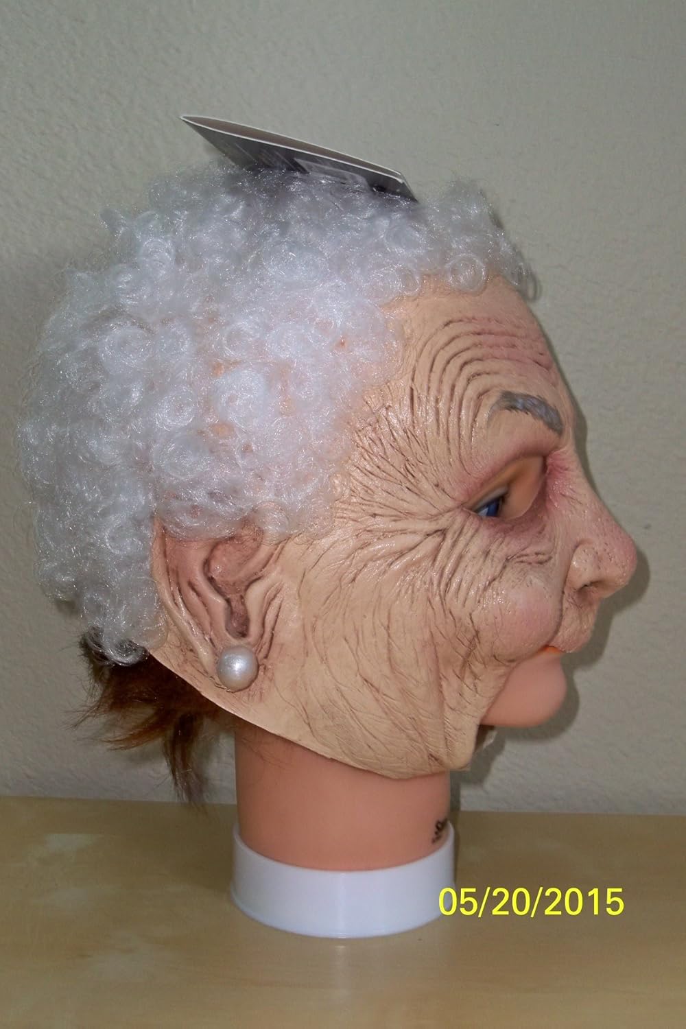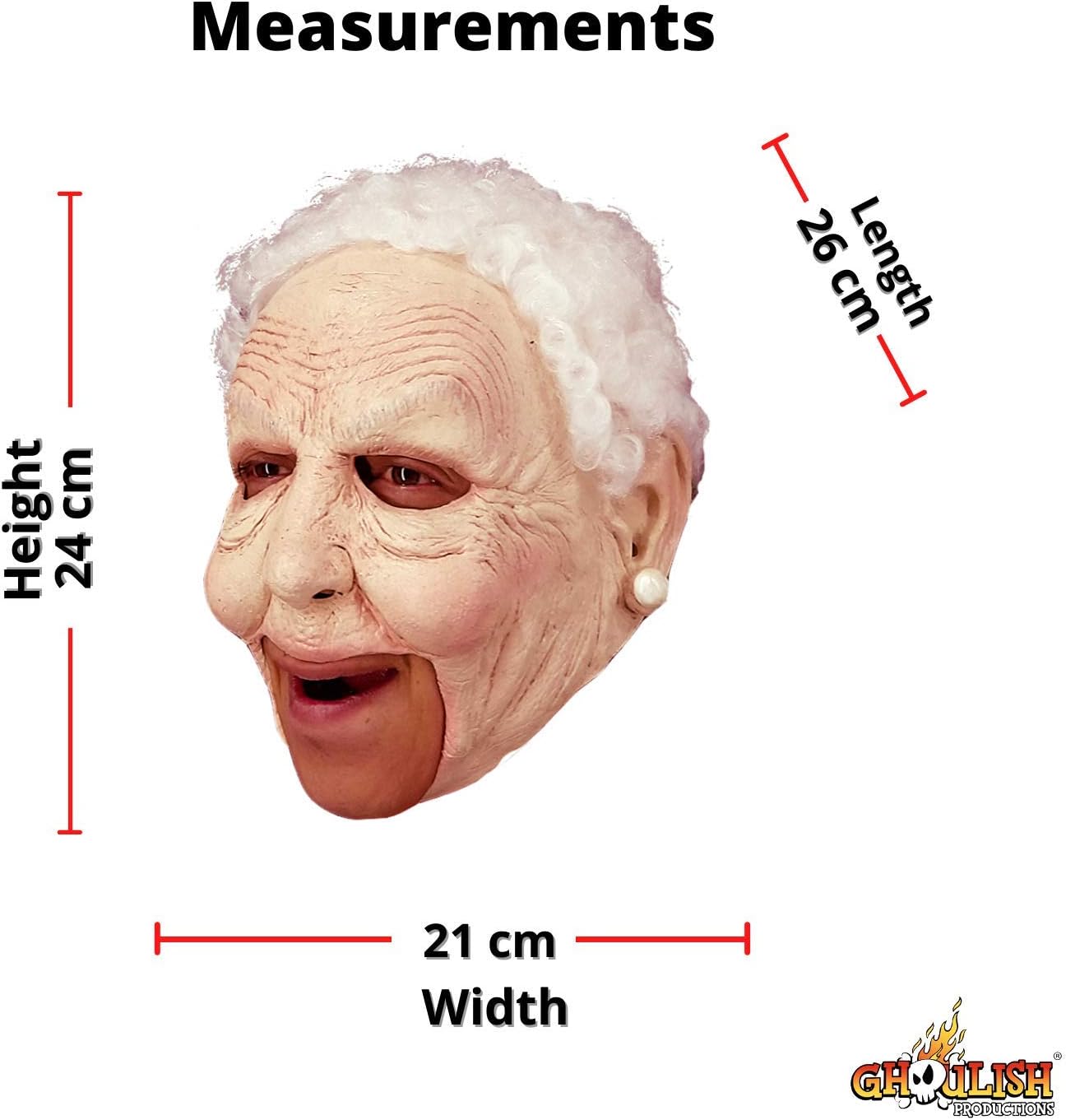 This is actually a really great mask. The only thing that could have been any better would be the fact that the back of the mask is pretty high cut so you would need a scarf or something if that nature in order to completely cover your own hair from showing. The front is cool because the mouth is completely open so you can actually breath and speak effortlessly. The design itself looks great, even better than I expected it too. Definitely a great mask choice if your trying to dress up like an an old woman. We heard compliment after compliment in the great costume when this was worn on Halloween night as we walked around with the kids.