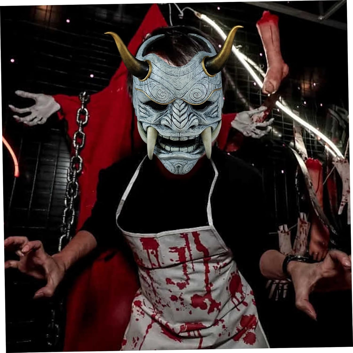 Descrizione del prodotto Maschera Oni, Maschera spaventosa da samurai a pieno facciale con corno di bue, Diavolo horror 11x9,5 con fascia elastica per Halloween, travestimento, oggetti di scena per cosplay, maschere per bambini Descrizione: ONI MACE, MASCHERA DA SAMURAI FACCIA SARY CON COSHET. Gli oggetti di scena combinano l'estetica tradizionale giapponese di Oni e samurai, con imponenti corna da diavolo e bue per un autentico aspetto demoniaco; Realizzati con materiali leggeri e affidabili con una fascia elastica per un Vestibilità sicura e confortevole, questa maschera a pieno facciale migliora qualsiasi costume per Halloween, Cosplay, Mascalerades, Case stregate o spettacoli teatrali, rendendola la scelta ideale per gli appassionati di maschere horror, maschere da diavolo, decorazioni Hannya. dimensione.. I colori possono presentare una leggera differenza a causa dei diversi display.. Il pacchetto include 1 pezzo di avviso di sicurezza ONI MASCH Avvertenza: Attenzione: questo prodotto è una maschera decorativa e non fornisce alcuna funzione protettiva. Evitare il contatto con fuoco o oggetti appuntiti durante l'uso. Garantire una respirazione normale mentre lo si indossa e non utilizzarlo durante la guida o l'utilizzo di macchinari. I bambini devono essere sorvegliati da un adulto per evitare soffocamenti o incidenti.
