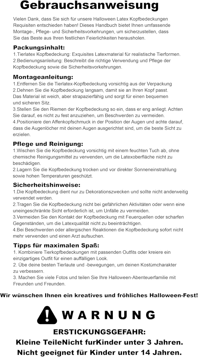 Leider ist die Maske zu groß (durchschn. Frauenkopf), der Nasen- und Augenbereich fällt immer wieder ein, da das Material dort zu dünn ist. Der Geruch ist allerdings in Ordnung.