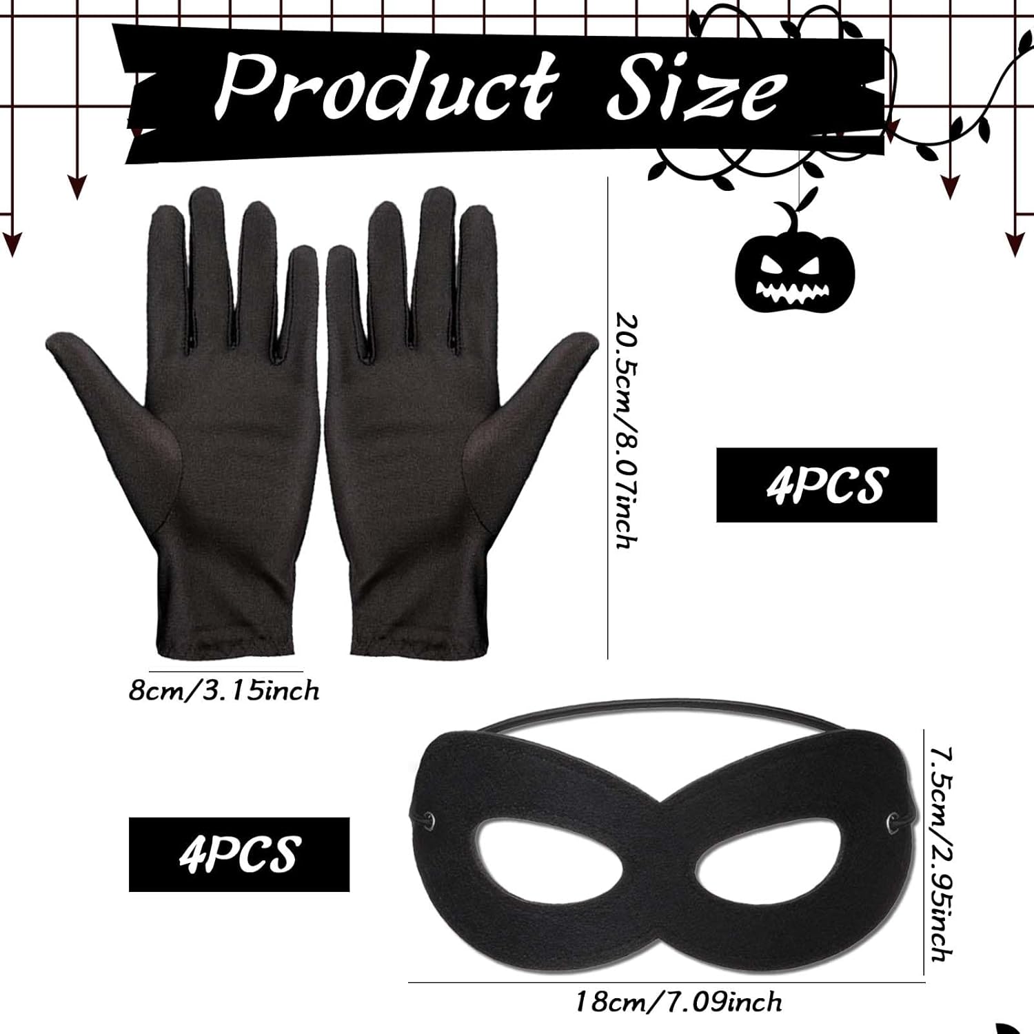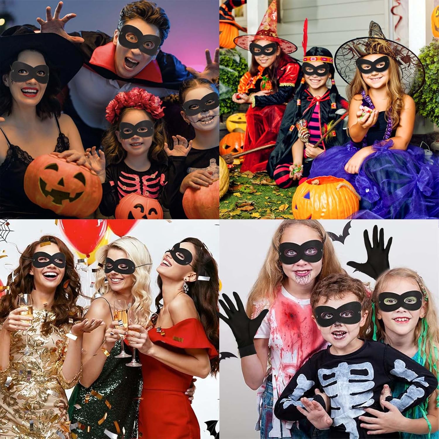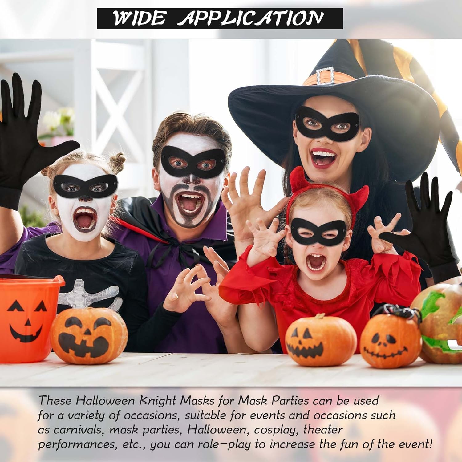Le nostre maschere per costumi da ballo sono fatte di materiale in feltro di alta qualità, offrendo comfort al tatto e resistenza a danni o sbiadimento per un uso prolungato. Queste maschere nere per Halloween sono dotate di elastico, consentendo un'adattabilità al tuo viso senza causare tensione. Si adattano alla maggior parte delle persone. Le nostre maschere da cavaliere di Halloween presentano un design trendy con un aspetto nero che ti farà sembrare cool. Le loro illustrazioni rispecchiano l'estetica della maggior parte delle persone, facendoti brillare nelle feste. Riceverai un set di 4 maschere di dimensioni circa 7.518cm e 4 paia di guanti neri di dimensioni circa 20.58cm. Puoi indossarli per partecipare a feste e il nostro generoso quantitativo soddisferà le tue esigenze. Questa maschera da festa può essere utilizzata in diverse occasioni. Puoi indossarla per feste di compleanno, Halloween, Pasqua, Natale, o anche per giochi di ruolo per rendere il tuo evento più divertente.
