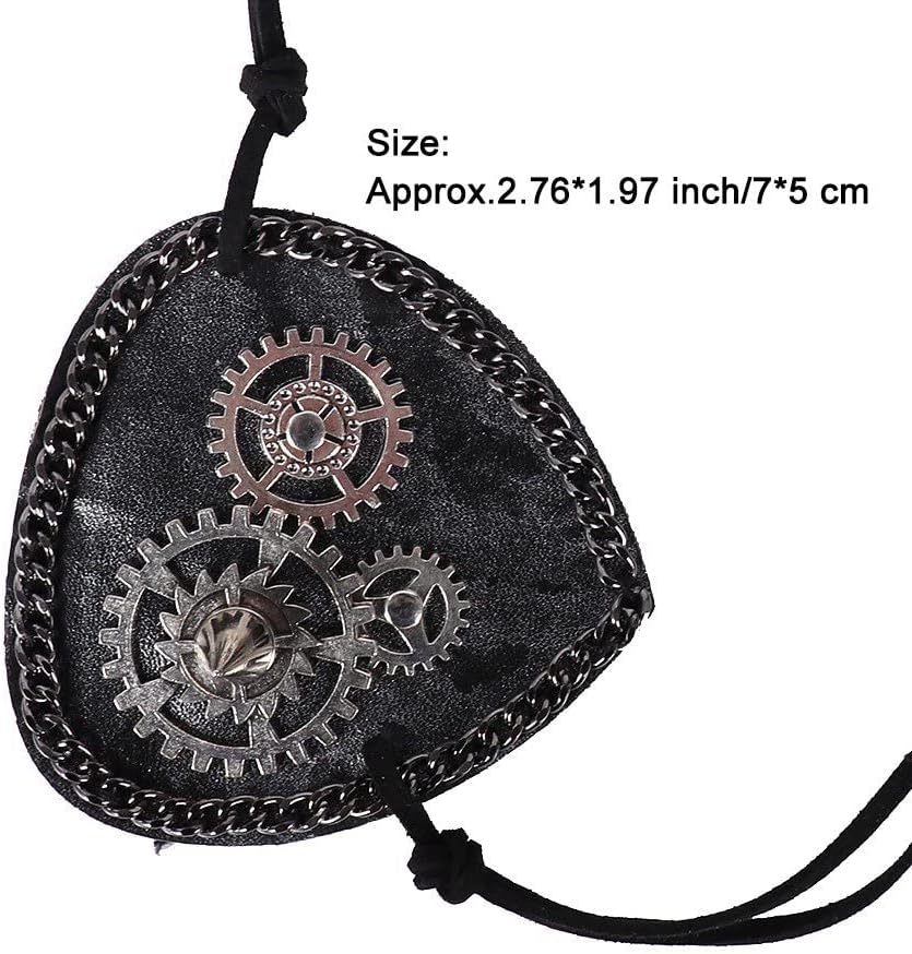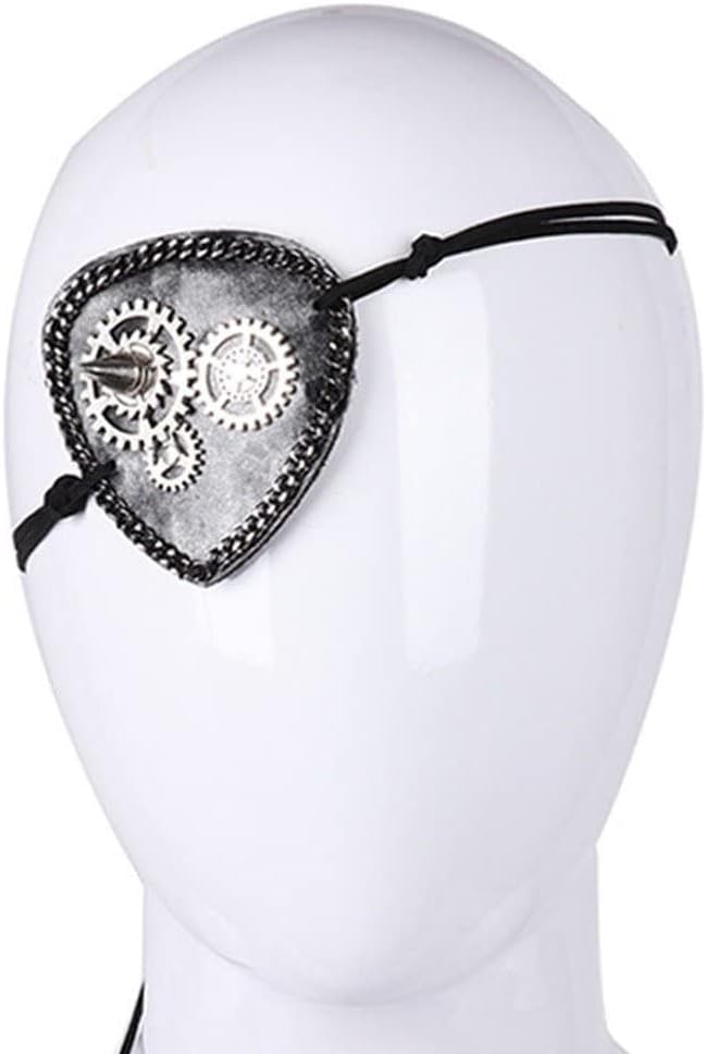 Design unico, benda sull'occhio in pelle con rivetti o decorazione dell'orologio, attira l'attenzione degli altri, ti rende più bella e affascinante. Materiale durevole, realizzato in lega PU di alta qualità, leggero e confortevole, nessun danno agli occhi o alla pelle. Facile da abbinare, adatto alla maggior parte degli adulti e dei bambini, costumi cosplay da abbinare ad altri costumi di Halloween. STEAMPUNK EYE PROP, adatto per vari cosplay, spettacoli teatrali, Natale, Halloween, Pasqua, oggetti fotografici, ecc. Maschera per gli occhi in pelle unica, cinghie lunghe, taglia unica per la maggior parte delle persone, non sembra troppo larga o stretta.