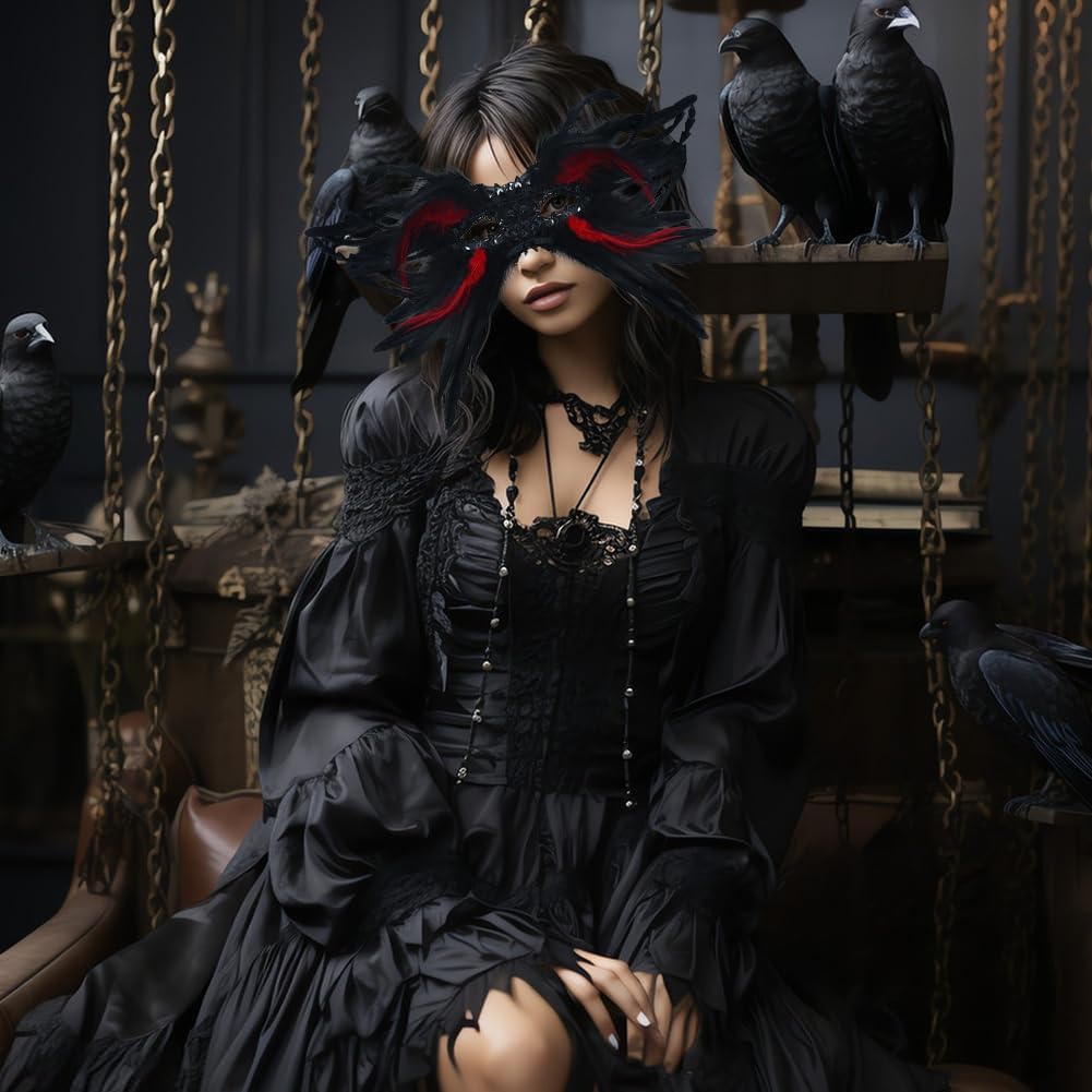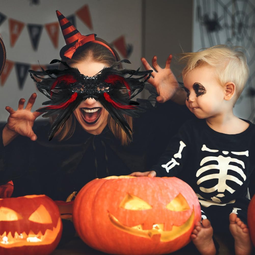 Katutude Maschera in maschera con piume, Elegante maschera in pizzo Mezza maschera Maschera in piume veneziane Maschera da ballo per donne sexy per feste di carnevale Ballo in costume di Halloween Caratteristiche: Nome del prodotto: Maschera in maschera di piume/Copertura per il viso di Halloween. Materiale: Piuma Colore: nero-rosso/nero Dimensioni del prodotto: come mostrato Quantità: un pezzo/2 pezzi. La confezione include: 1 maschera per il viso