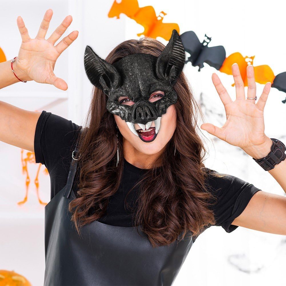 Squisito: testa della maschera pipistrello è ricca di dettagli e appare realistica, senza bisogno di un trucco ingombrante. Squisita fattura: questa maschera è realizzata con cura e attenzione dettagli, dimostrando una squisita fattura e un design raffinato. Ampiamente usato: questa maschera è adatta a varie occasioni come carnevale, Halloween e feste di cosplay. È una maschera pipistrello versatile aggiungere alla tua collezione di costumi. Materiale confortevole: questa maschera è realizzata in materiale traspirante e confortevole, progettato per prevenire attacchi horror e garantire un'esperienza di utilizzo piacevole. Design unico: questa spaventosa maschera pipistrello ti farà distinguere e ti renderà il centro 'attenzione a qualsiasi carnevale o festa in maschera. Maschera pipistrello di Halloween