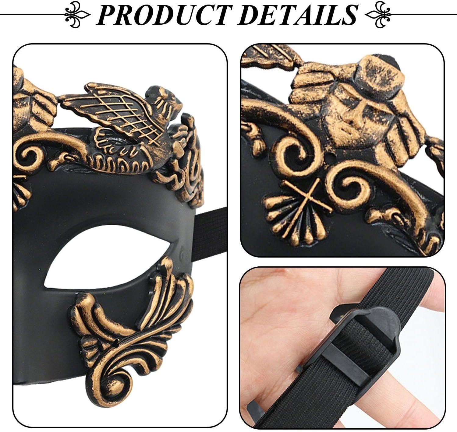 【Contenuto Del Prodotto】 Riceverai 1 Maschera Retrò. La Maschera Ha Dimensioni 17*12 Cm Ed È Di Colore Nero E Di Rame, Adatto Per L'Uso In Mascherate E Decorazioni Per Feste. 【Materiale Del Prodotto】 Questa Maschera È Realizzata In Plastica, Leggera E Resistente. Il Suo Materiale Non Solo Garantisce L'Uso A Lungo Termine Della Maschera, Ma Offre Anche Un'Esperienza Di Usura Confortevole. 【Design Unico】 Questa Maschera È Realizzata Con Un Design Retrò, Con Toni Neri E Rame Elei E Misteriosi. I Dettagli Squisiti E Lo Stile Unico Lo Rendono Una Decorazione Brillante Per Una Festa O Una Mascherata. 【Ampiamente Utilizzata】 Questa Maschera È Ideale Per L'Uso In Varie Feste A Tema, Maschera E Celebrazioni Del Festival. Non Solo Può Essere Usato Come Decorazione Personale, Ma Anche Come Elemento Unico Di Un Layout Delle Parti. 【Facile Da Indossare】 La Maschera È Progettata Per Essere Comoda Da Indossare E Facile Da Usare. Il Materiale Leggero E Le Dimensioni Appropriate Lo Rendono Saldamente Indossato Sul Viso E Non È Facile Da Scivolare.