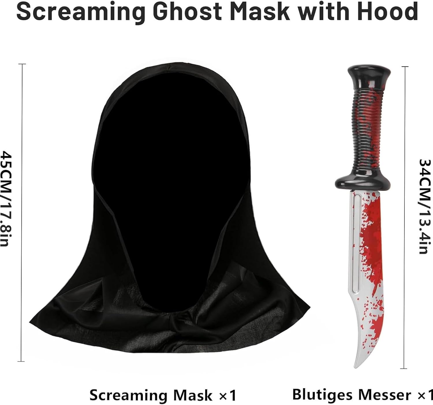 Maschera Scream sanguinante con coltello, maschera Ghostface separata in EVA, maschere di Halloween Scream per adulti e bambini, maschera horror da film horror per cosplay, accessorio di Halloween e carnevale