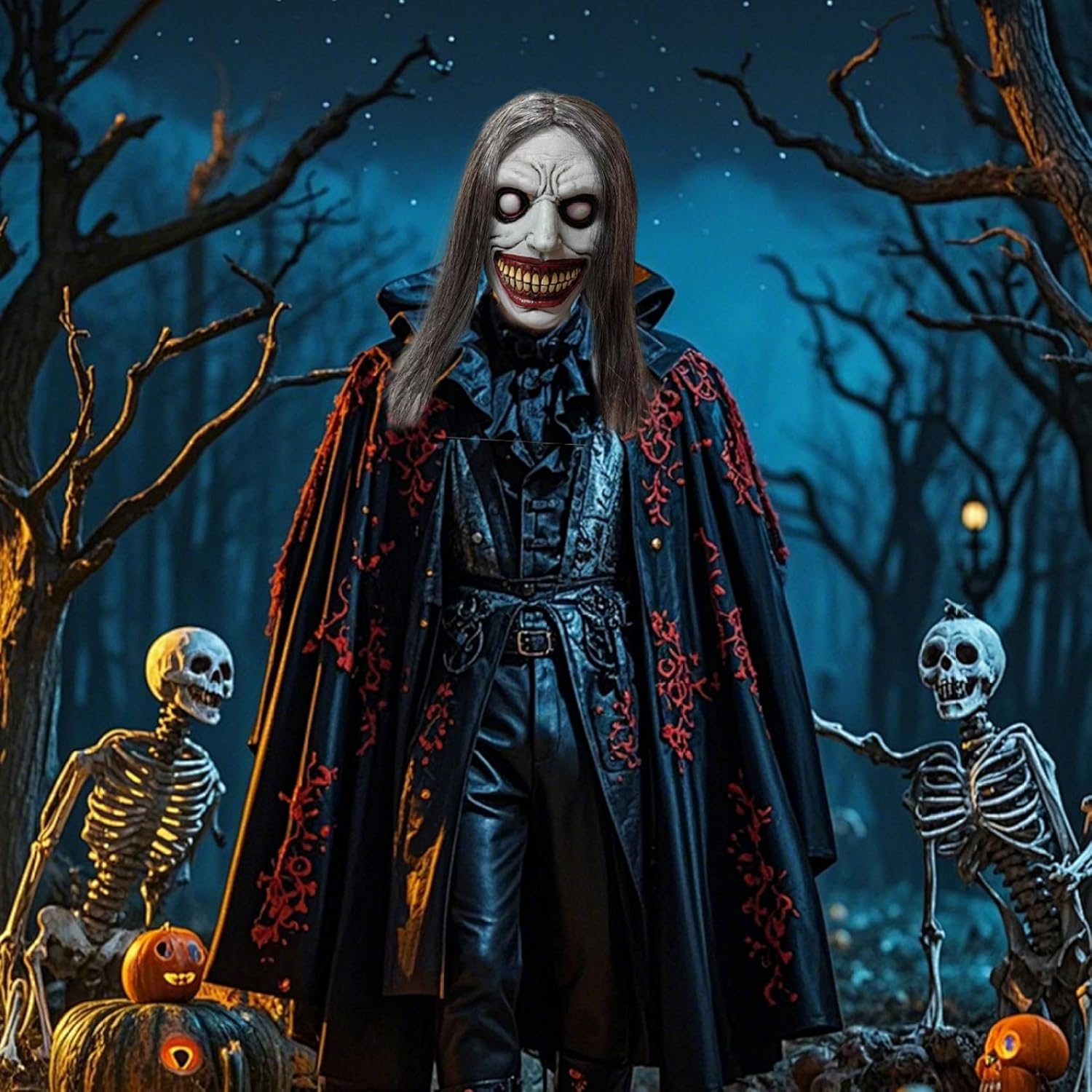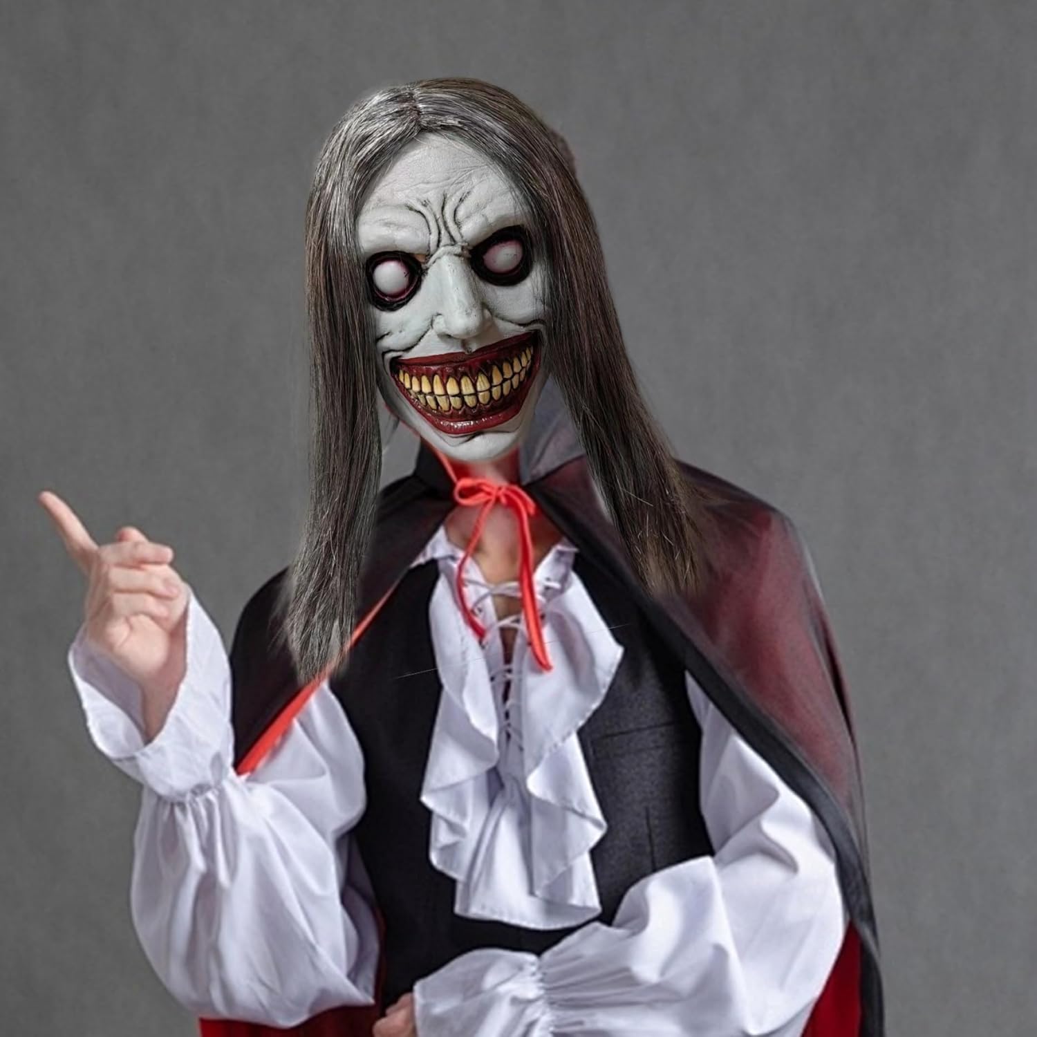 E MATERIALE FLESSIBILE: Realizzata in lattice di prima qualità, questa maschera è flessibile ma robusta, garantendo che resista all'uso ripetuto e mantenga la sua forma, permettendoti di goderti il tuo spettrale costume di Halloween anno dopo anno senza preoccuparti di danni. Design realistico da demone: realizzata in lattice, questa maschera di Halloween presenta una terrificante faccia da demone con un sorriso inquietante e capelli lunghi e inquietanti, fornendo un effetto inquietante che ti renderà al centro dell'attenzione in qualsiasi festa o evento di Halloween. Perfetto per urla e spaventi. Facile da indossare e riporre: leggera e facile da indossare o da togliere, questa maschera spaventosa è dotata di caratteristiche traspiranti e aperture per occhi e naso sufficientemente grandi, garantendo un'esperienza migliore; è anche facile da riporre senza deformazioni, pronta per la tua prossima occasione spaventosa. VESTIBILITÀ CONFORTEVOLE PER GLI ADULTI: Progettata per adattarsi comodamente alla maggior parte degli adulti, questa spettrale maschera di Halloween ti consente di indossarla per lunghi periodi di tempo senza disagio, rendendola ideale per notti di Halloween, feste in costume, case stregate o eventi a tema per uomini e donne. Accessorio versatile per costumi horror: questa maschera da demone si abbina perfettamente a vari costumi spettrali di Halloween, migliorando il tuo look senza sforzo, sia che tu stia cercando un demone malvagio, uno spirito infestato o un altro personaggio ispirato all'orrore, adatto per cosplay, riunioni a tema o dolcetto o scherzetto.