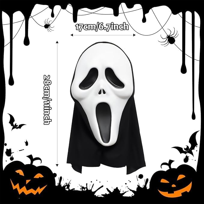 Design autentico della faccia da fantasma: questa maschera di Scream ispirata ufficialmente presenta una smorfia realistica, dettagli terrificanti e inquietanti occhi vuoti, perfetti per creare un orrore istantaneo. La sua classica espressione ghostface ti assicura di essere al centro dell'attenzione a qualsiasi festa di Halloween o evento infestato. Di alta qualità e confortevole: realizzata in materiale EVA leggero e traspirante, la maschera è elastica, resistente al sudore e si adatta alla maggior parte degli adulti (17×28 cm). Il design regolabile si adatta a qualsiasi forma del viso, garantendo ore di comfort senza appannamento o disagio. Versatile per ogni occasione spaventosa: ideale per costumi di Halloween, case infestate, cosplay o convention horror. Ottimo anche come decorazioni per feste, oggetti di scena fotografici o eventi a tema (Natale, Pasqua, carnevali). Abbastanza robusto da poter essere riutilizzato anno dopo anno! Effetto horror istantaneo: la finitura opaca e gli accenti scuri amplificano la paura in condizioni di scarsa illuminazione. Guarda gli amici urlare di terrore mentre ti nascondi nell'ombra: questa maschera ti garantisce brividi e brividi. Perfetto Halloween Essential:Un accessorio indispensabile per i fan dell'horror! Abbinalo a una vestaglia nera per il costume definitivo di Ghostface o usalo per elevare le paure della casa infestata.