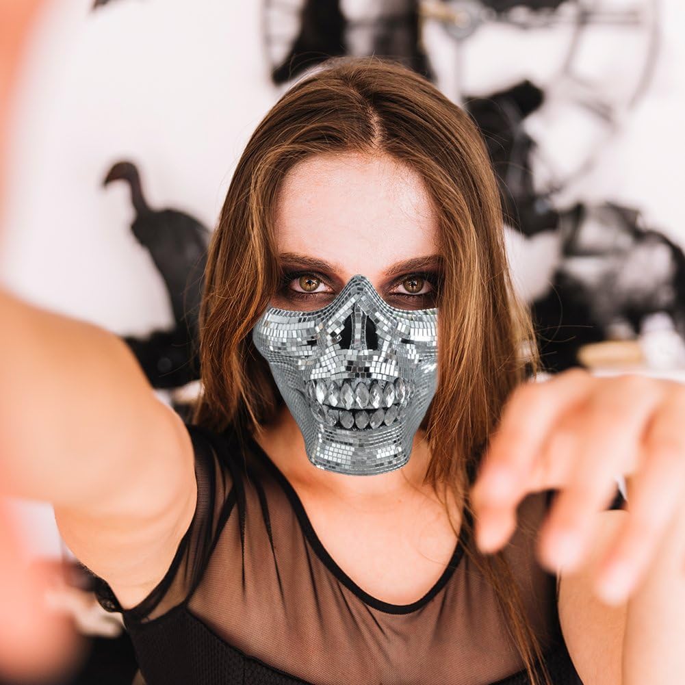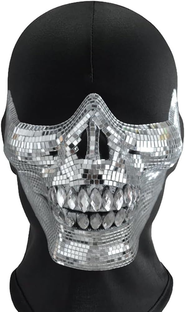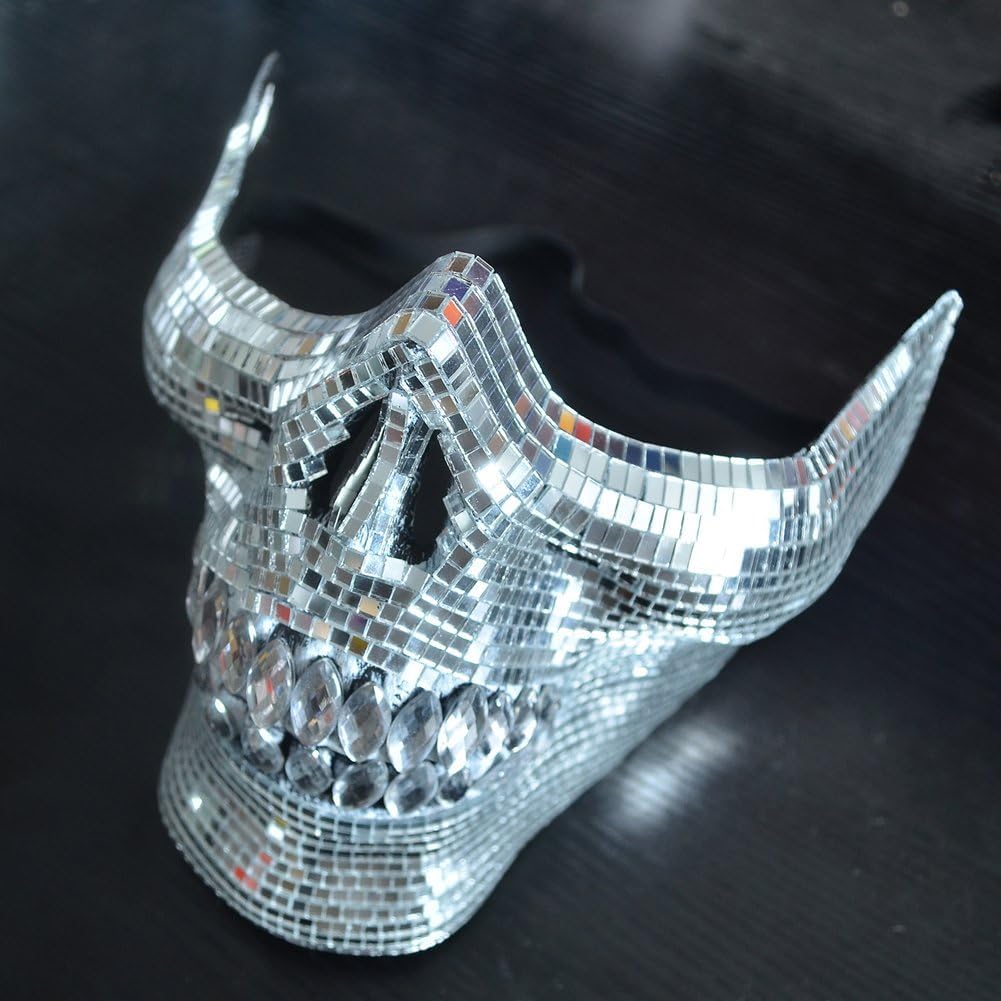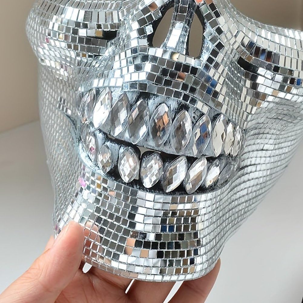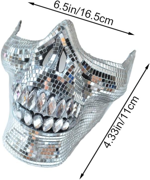 Perfetto per balli, feste in maschera, festival e incontri a tema, questo accessorio impreziosisce i tuoi outfit e valorizza il look generale con il suo aspetto sorprendente. Per i giovani amanti delle feste e per gli individui alla moda, questa maschera è adatta a coloro che vogliono distinguersi all'evento e loro stile unico L'intricato lavoro di intarsio in vetro non esalta l'aspetto estetico, garantisce anche durevolezza, rendendolo un'aggiunta indispensabile alla tua collezione di accessori per costumi. Trasformati in una e propria vita con maschera a mezza faccia con teschio di , caratterizzata un design riflettente a specchio scintillante che cattura l'attenzione e aggiunge un tocco di stile a qualsiasi costume. Realizzata in materiali di vetro, questa comoda maschera è progettata per essere facilmente regolata, garantendo una perfetta aderenza a diverse forme del viso senza causare fastidio in caso di utilizzo prolungato.