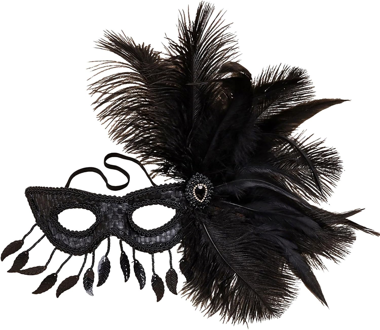 Maschera veneziana con strass e piume, per feste in maschera, feste di Halloween, cosplay, foto