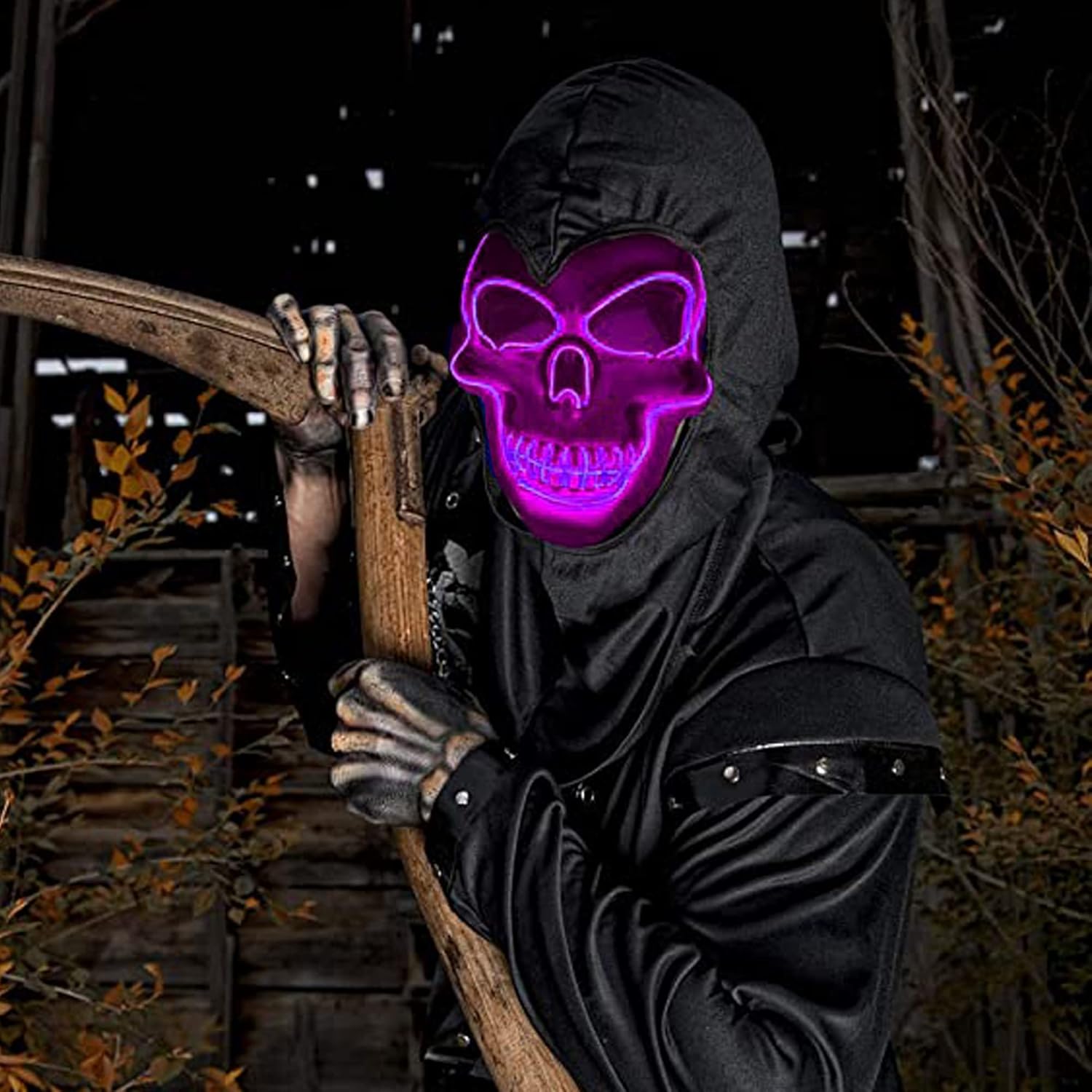Maschere di Halloween, Maschera di Purificazione, Maschera LED per Halloween, Maschera Teschio LED, Pittura Teschio Fai da Te e 3 Modalità di Illuminazione, per la Decorazione di Costumi di Carnevale (Blu)