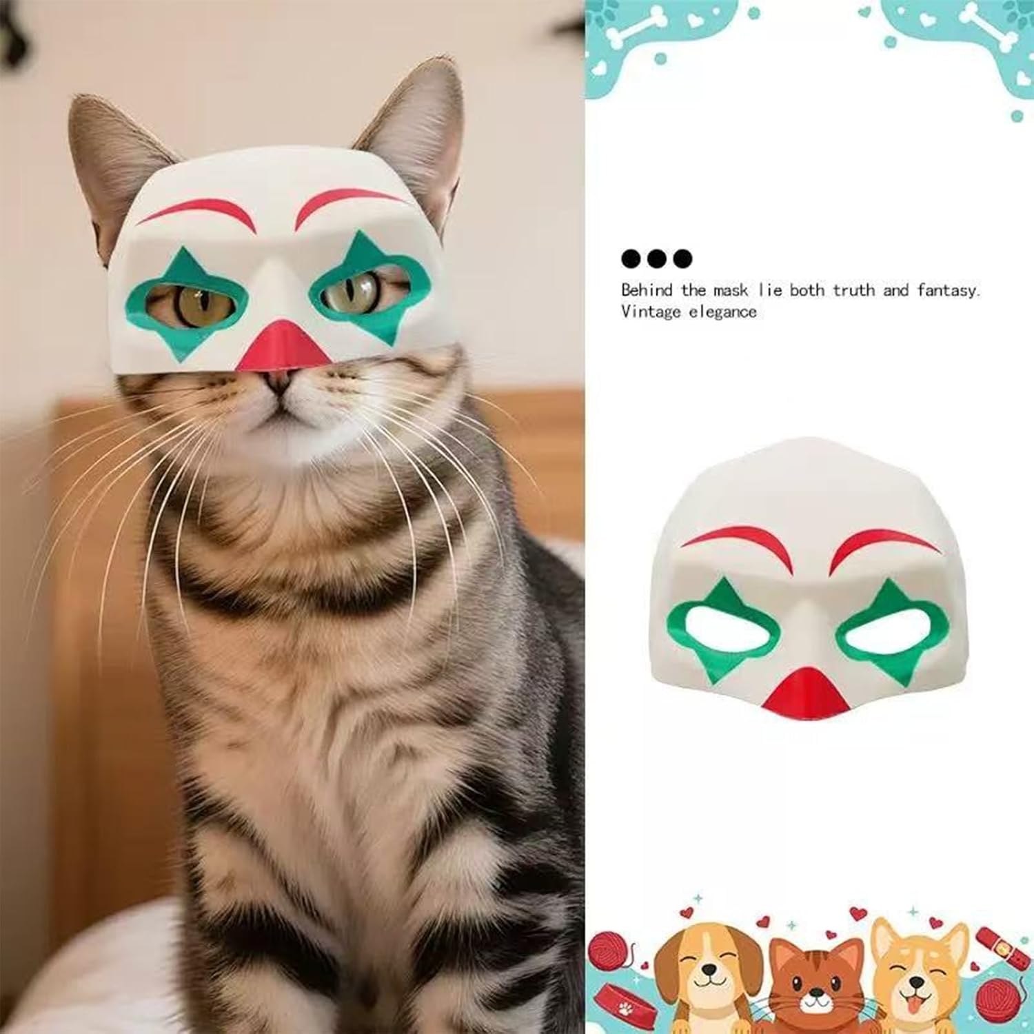 Descrizione del prodotto Trasforma la tua piccola tigre o il tuo pagliaccio nella stella di ogni festa di Halloween! La nostra maschera per gatti pipistrello pagliaccio porta divertimento e giocosità durante le festività natalizie, senza sacrificare il comfort e la sicurezza del tuo amato animale domestico. Perché i proprietari scelgono questa maschera: Sicurezza e comfort prima di tutto: comprendiamo che il benessere del tuo animale domestico è una priorità assoluta. La maschera è stata progettata per non essere troppo pesante e per non limitare i movimenti naturali del tuo gatto o cane di piccola taglia. Gli occhi e le narici rimangono sempre puliti. DESIGN ADORABILE: il giocoso modello di pipistrello e clown è progettato specificamente per gli animali domestici e non presenta dettagli troppo spaventosi o potenzialmente protetti da copyright. Niente più ostacola un aspetto divertente! Facile da usare: anche se il tuo animale domestico non è abituato agli accessori, la maschera si adatta e indossa facilmente grazie al suo materiale morbido e al semplice elastico. Note importanti sull'uso: abituare il vostro animale domestico a indossare la maschera lentamente e con pazienza. Inizia con brevi periodi in un ambiente familiare e rilassato. Non lasciare MAI il tuo animale domestico incustodito mentre indossa la maschera o se mostra segni di stress, disagio o tenta di togliere la maschera. La maschera è destinata ad essere utilizzata solo sotto supervisione e per brevi periodi di tempo, ad esempio per foto o ad una festa. Assicurati di scegliere la taglia corretta. Una maschera troppo stretta può essere scomoda, una maschera troppo larga può scivolare. Istruzioni per la cura: dopo l'uso, pulire la maschera preferibilmente con un panno morbido, leggermente umido e un detergente delicato. Lascialo asciugare all'aria. Conservarlo in un luogo fresco e asciutto. La nostra promessa: attribuiamo grande importanza alla qualità e alla soddisfazione del cliente. Se avete domande, non esitate a contattarci. Avviso di sicurezza n