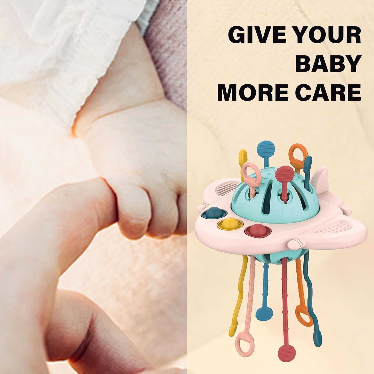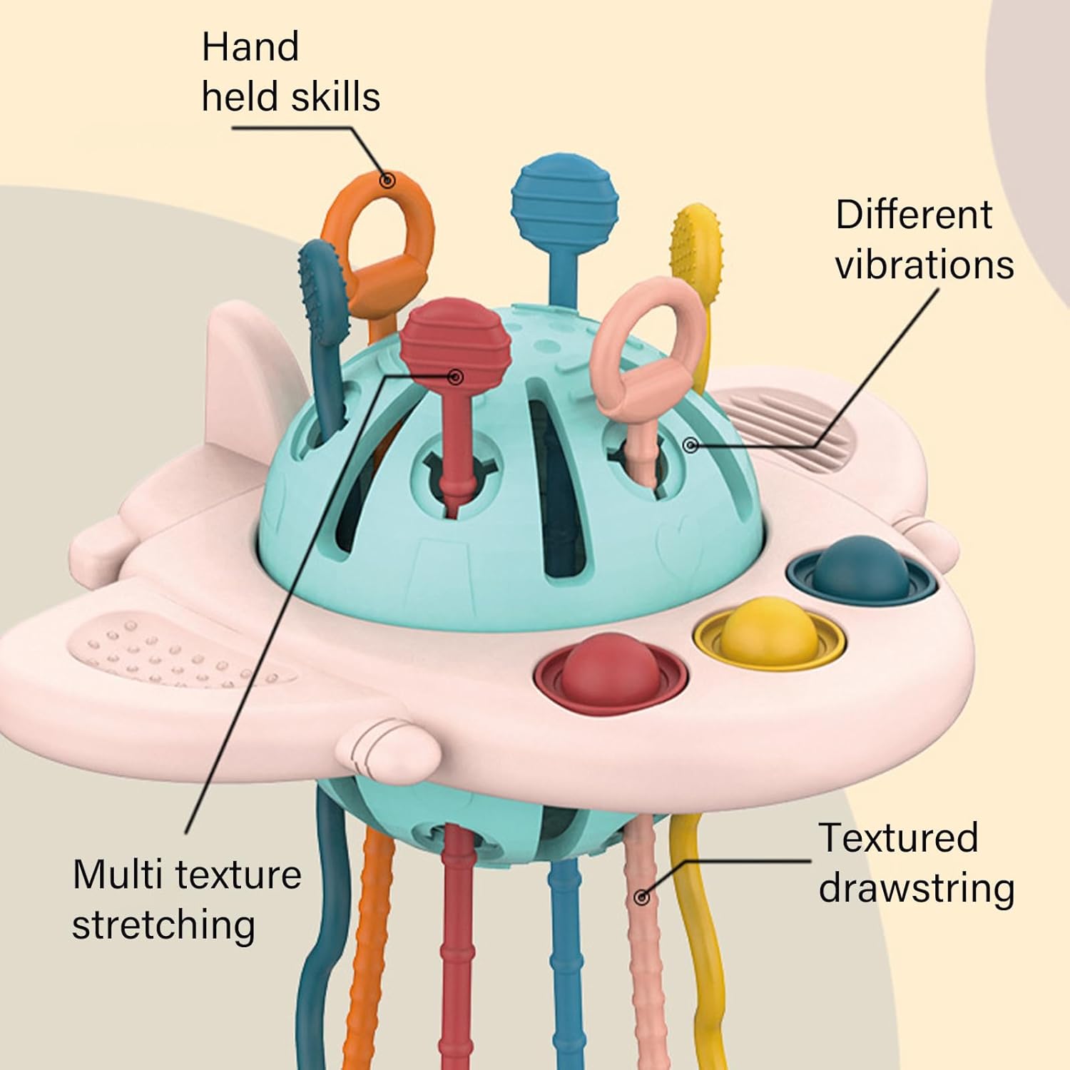 Giochi creativi: questo giocattolo consente ai bambini di giocare in modo creativo. Puoi tirare la corda e premere il pulsante per esplorare la trama e affrontare diverse situazioni Sviluppo sensoriale multifunzionale: offre diverse opportunità per lo sviluppo sensoriale e le capacità motorie dei bambini Colori vivaci, diverse texture e pulsanti interattivi, fori e corde stimolano la percezione visiva e uditiva dei bambini Plastica sicura: giocattolo per bambini di età superiore a 18 mesi Applica abilità motorie e coordinazione occhio-mano: ai giocattoli vengono date forme, dimensioni e anelli di presa diversi, che forniscono giochi diversi per le manine dei più piccoli. Tirando, spingendo, spingendo e afferrando, le capacità motorie e la coordinazione occhio-mano vengono abili e rafforzate