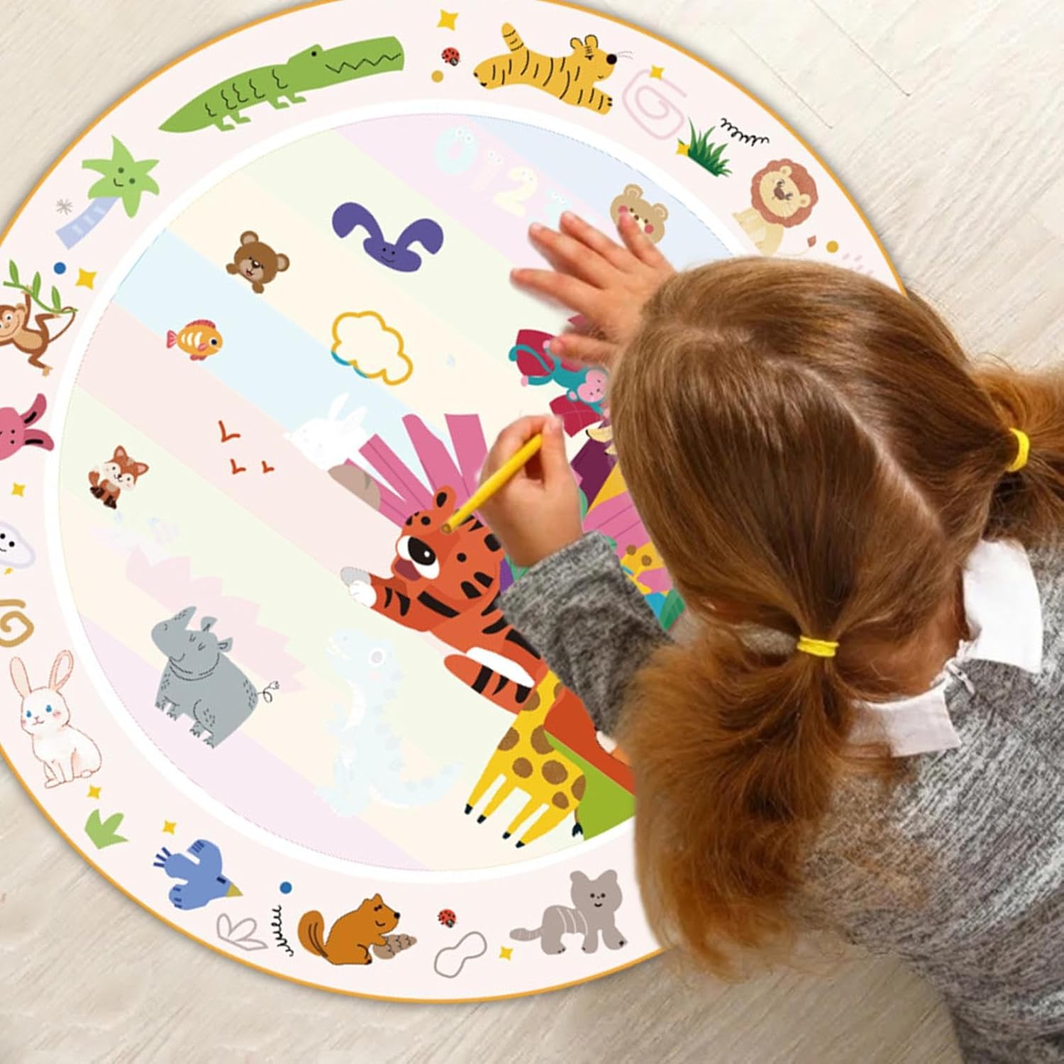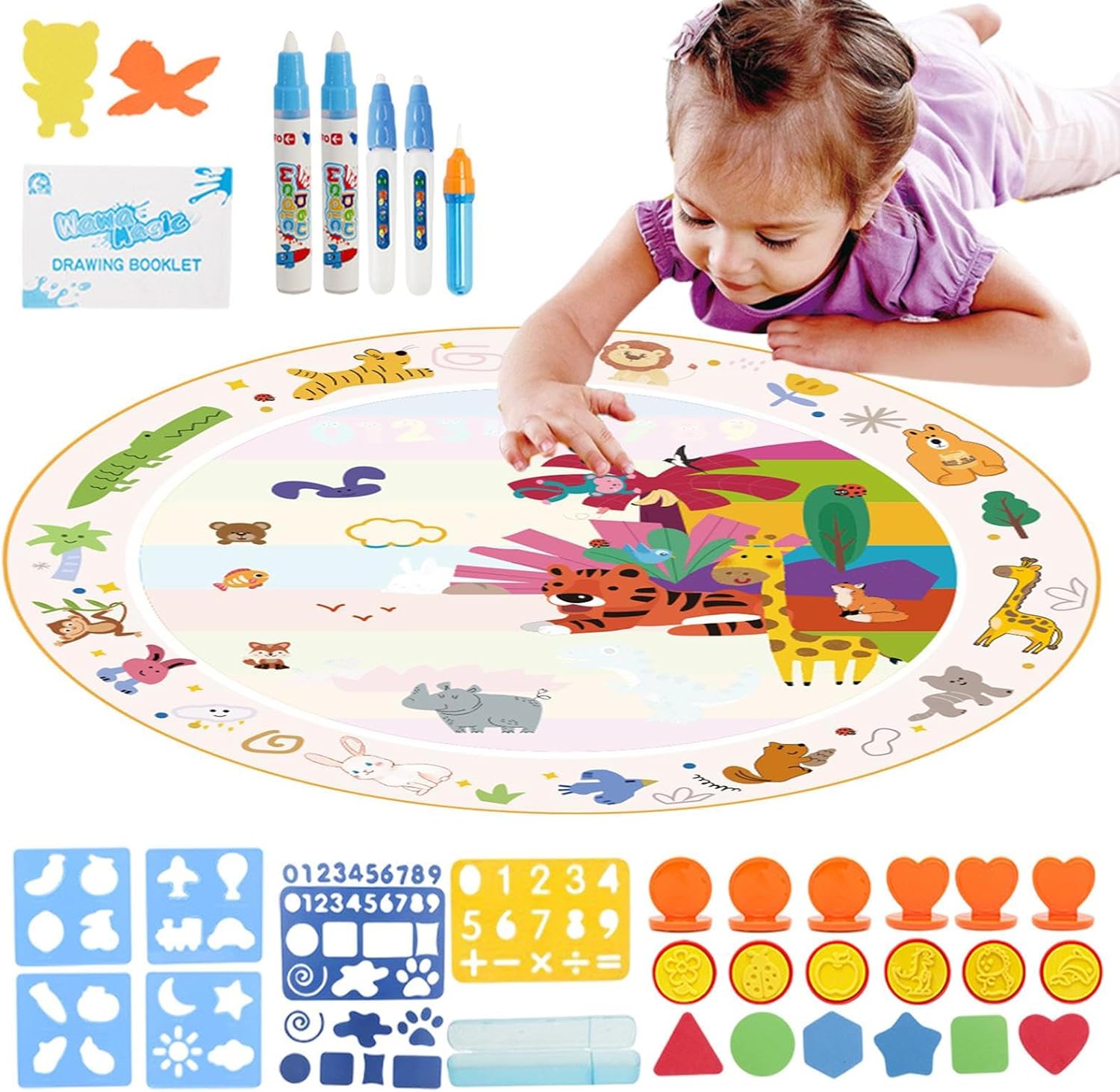 Divertimento creativo riutilizzabile: imparare il tappetino da disegno ad ogni bussare e colori vibranti appaiono sulla tela sensibile all'acqua, trasformando le tue creazioni in affascinanti capolavori; Man mano che l'acqua evapora, la tela si cancella, pronta per la tua prossima avventura artistica Incoraggia l'apprendimento e il gioco: Baby Aqua Mat Kids può rilasciare la loro immaginazione mentre scarabocchiarsi su questo tappetino, favorire la creatività, migliorare le abilità e creare un'esperienza di apprendimento divertente e interattiva Previene i rischi per la salute: tavolo da disegno 'acqua con angoli arrotondati e materiale in tessuto innocuo + addominali, questo tappetino da scarabocchi previene lesioni accidentali come i graffi e si assicura che sia sicuro supponendo che il bambino metta accidentalmente la penna d'acqua in bocca, abilitando ai genitori la tranquillità della loro salute Presente per ogni occasione: questo disegno senza pasticceria presenta un modo divertente per i bambini di sviluppare abilità artistiche, rendendolo un regalo ponderato per compleanni e occasioni speciali Uso versatile: tappetino per bambini Doodle Un must per le avventure a casa, a scuola e di viaggio, il nostro tappetino da scarabocchi è adatto per il divertimento interno e esterno presso la scuola materna o all'aperto