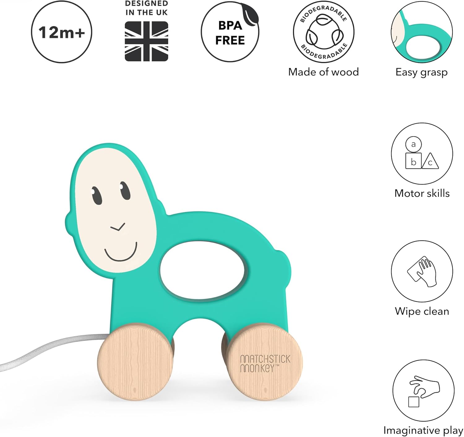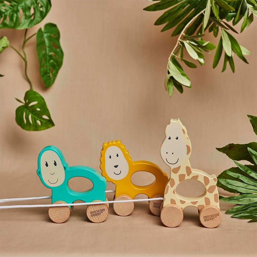 Giocattolo da tirare Matchstick Monkey – Il giocattolo da tirare di Matchstick Monkey è il primo compagno perfetto e favorisce la mobilità dei bambini. La sostenibilità incontra il divertimento: il nostro giocattolo è realizzato in legno di faggio di alta qualità ed è ecologico. Grazie al centro ritagliato, è facile da afferrare, favorisce le capacità motorie e allena la coordinazione occhio-mano. Divertimento da corsa per i più piccoli: l'Matchstick Monkey animale da traino in legno è ideale per correre o spingere sul pavimento. Un bel regalo per il primo compleanno dei bambini. Disponibile come leone, giraffa , o scimmia!