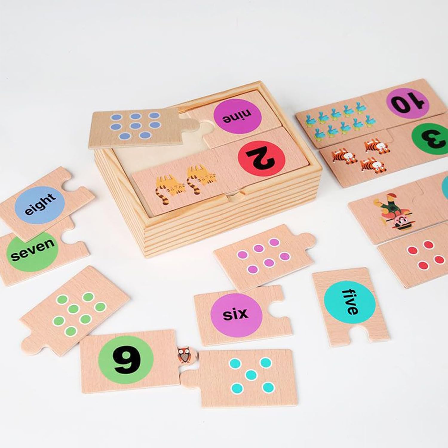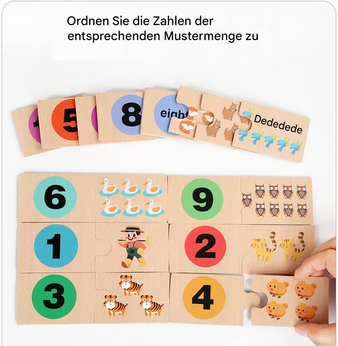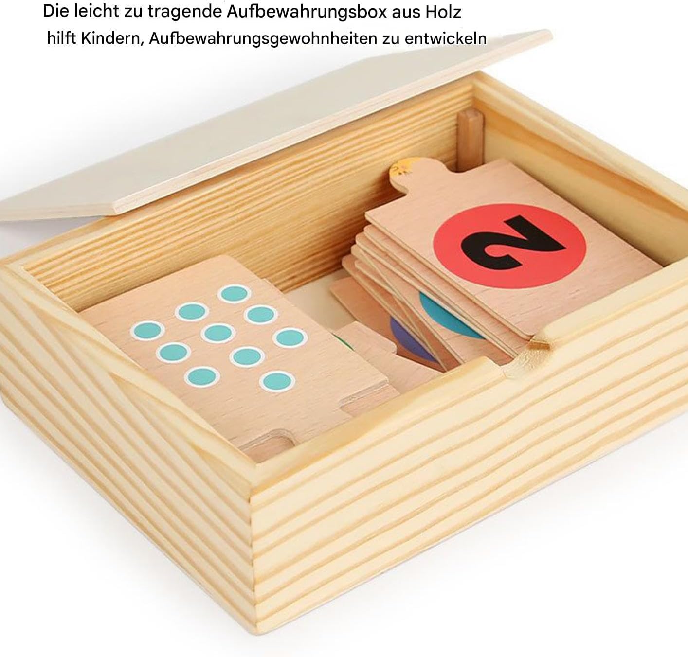 Materiale di apprendimento facile da viaggio: grazie alla scatola in legno e al design pratico, questo giocattolo allena in modo giocoso l'ordine e offre una gestione dei puzzle salvaspazio per i viaggi Supporto matematica di base: sviluppa il riconoscimento della forma del colore e le connessioni numero-parola con funzione puzzle a doppia faccia come strumento ideale per i primi successi di apprendimento matematico Strumento di apprendimento cognitivo: il puzzle educativo funge da attività di costruzione di logistica e promuove le abilità di apprendimento cognitivo nei bambini. Rafforza la coordinazione occhio-mano e allo stesso tempo allena i muscoli di controllo per le abilità motorie. Rafforzare i legami familiari: realizzato con materiali sostenibili, questo puzzle a prova di bambino supporta lo sviluppo di abilità di smistamento e riconoscimento dei numeri attraverso un gioco interattivo che avvicina genitori e figli Allenamento della memoria per bambini: attiva lo sviluppo prescolare con esercizi che combinano il pensiero logico e la memoria. Questo giocattolo educativo sfida i bambini con emozionanti compiti di assegnazione per rafforzare le loro capacità cognitive durante il gioco.