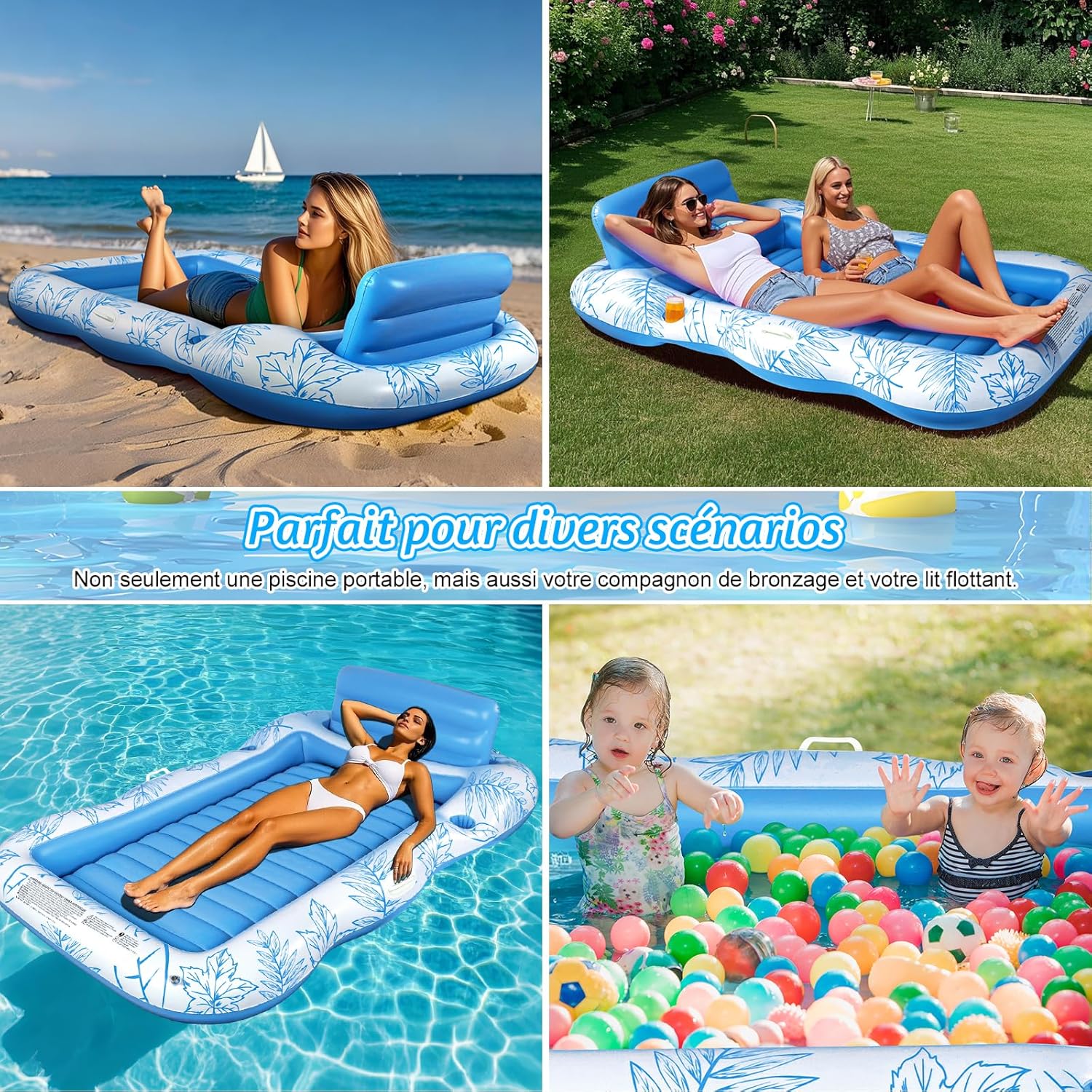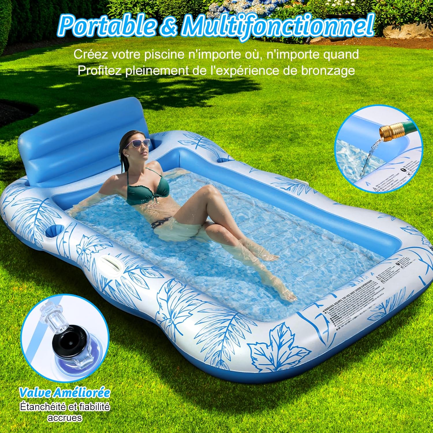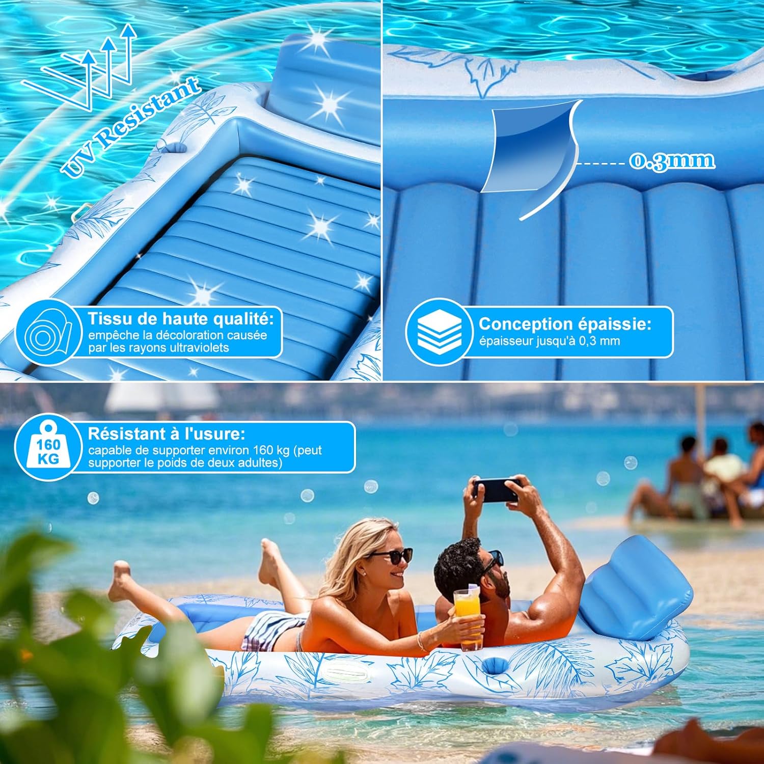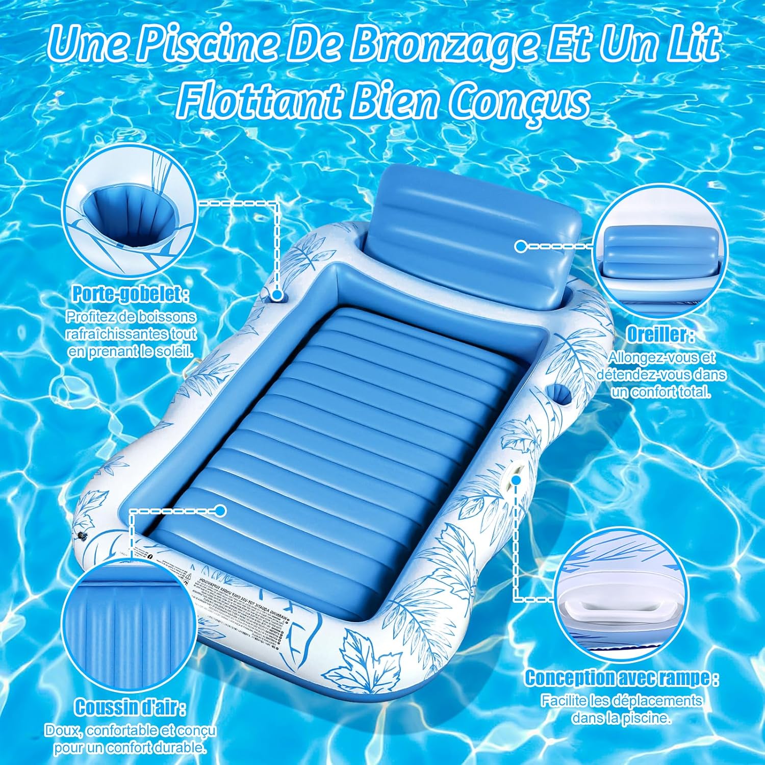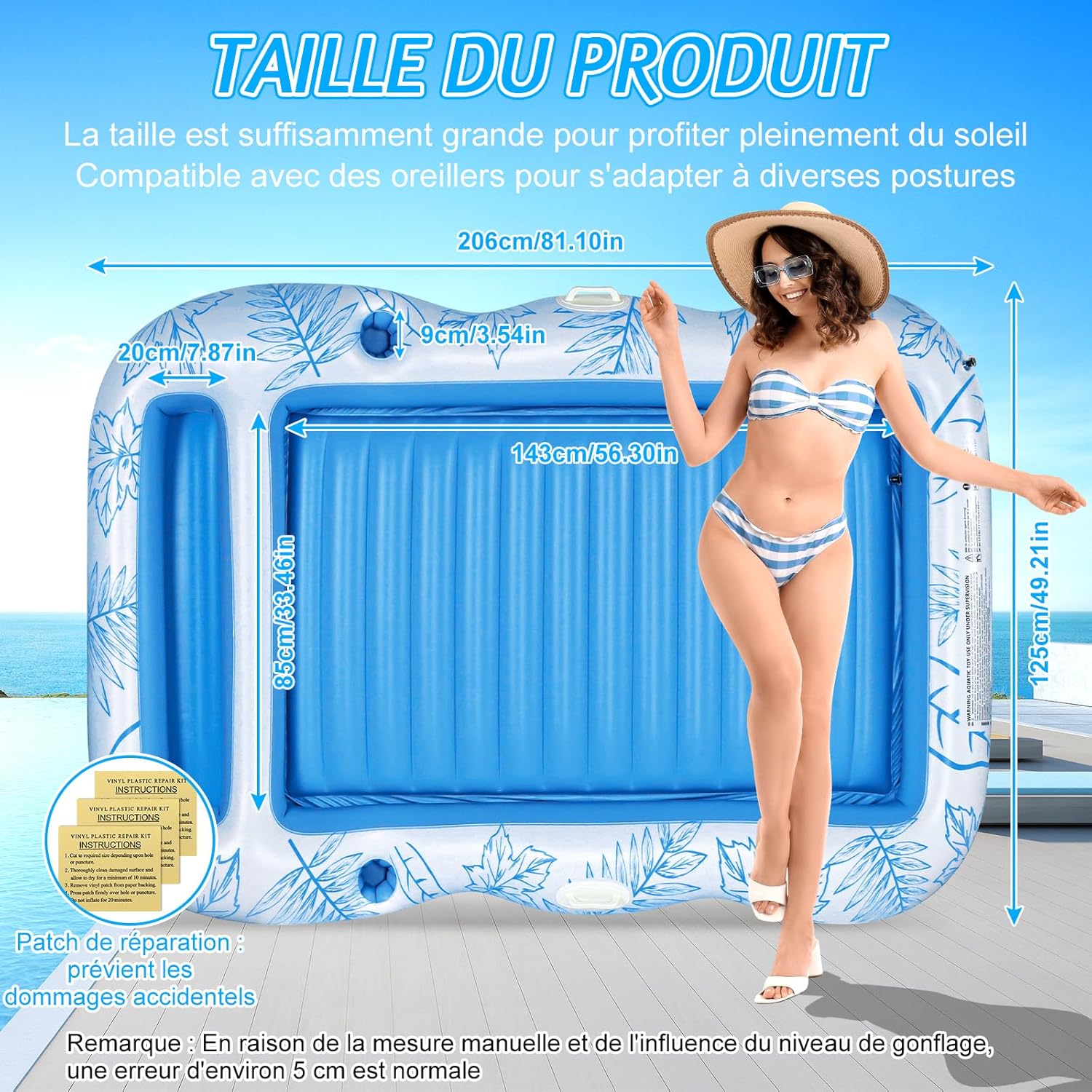 🏝️【Design morbido e confortevole】Piscina abbronzante gonfiabile con comodo poggiatesta e fondo nervato e rinforzato, il lettino abbronzante gonfiabile è progettato per fornire un supporto ottimale al collo e a tutto il corpo. Il materasso gonfiabile per piscina può essere utilizzato direttamente sull'acqua per prendere il sole più comodamente, o sulla terraferma riempiendo d'acqua il letto galleggiante per godersi un'esperienza di sonno doppiamente fresca e confortevole, che può aggiungere divertimento senza fine al tuo tempo libero. 🏝️【Con 2 pratici portabicchieri】Questa sedia da bagno gonfiabile per piscina è dotata di 2 portabicchieri integrati così puoi goderti immediatamente le tue bevande e snack preferiti. Non hai bisogno di lasciare il comfort del lettino della piscina, puoi goderti l'acqua fresca della piscina mentre mangi deliziosi snack e bevande fredde e ti godi il divertimento estivo, rendendoti facile goderti il fresco in una calda giornata estiva. 🏝️【Grandi dimensioni e facile da usare】Questo materasso ad acqua per amaca da piscina è realizzato in PVC spesso e resistente, con uno spessore fino a 0,3 mm, per garantire comfort e rispetto della pelle. Il lettino misura 206 x 125 cm ed ha una portata massima di 160 kg e può ospitare fino a due persone. C'è spazio più che sufficiente per un adulto o un bambino per sdraiarsi comodamente sul lettino gonfiabile della piscina, sia che tu voglia rilassarti o divertirti con la famiglia e gli amici a bordo piscina, questa piscina per prendere il sole è una buona scelta! 🏝️【Facile da gonfiare e trasportare】Questo materasso gonfiabile per piscina per adulti è dotato di una valvola a tenuta stagna e si gonfia e sgonfia completamente in pochi minuti. Le comode maniglie su ciascun lato ti mantengono stabile ed equilibrato in acqua. Inoltre, è leggero, si piega e si ripone facilmente, permettendoti di portarlo ovunque e goderti il tuo tempo libero. Conservarlo in un luogo asciutto e tenerlo lontano da fonti di calore e luce solare. 🏝️【Un materasso estivo versatile per il nuoto】 I materassi gonfiabili per piscina abbronzante sono perfetti per una varietà di attività estive all'aperto e possono essere utilizzati in molti scenari come piscine, spiagge, campi estivi, laghi, cortili, parchi acquatici e altro ancora. Il galleggiante gonfiabile per piscina prendisole può essere riempito d'acqua come una piccola piscina nel tuo giardino o prato, permettendoti di prendere il sole e rilassare tutto il corpo, perfetto come regalo per te o per la tua famiglia e i tuoi amici quest'estate.